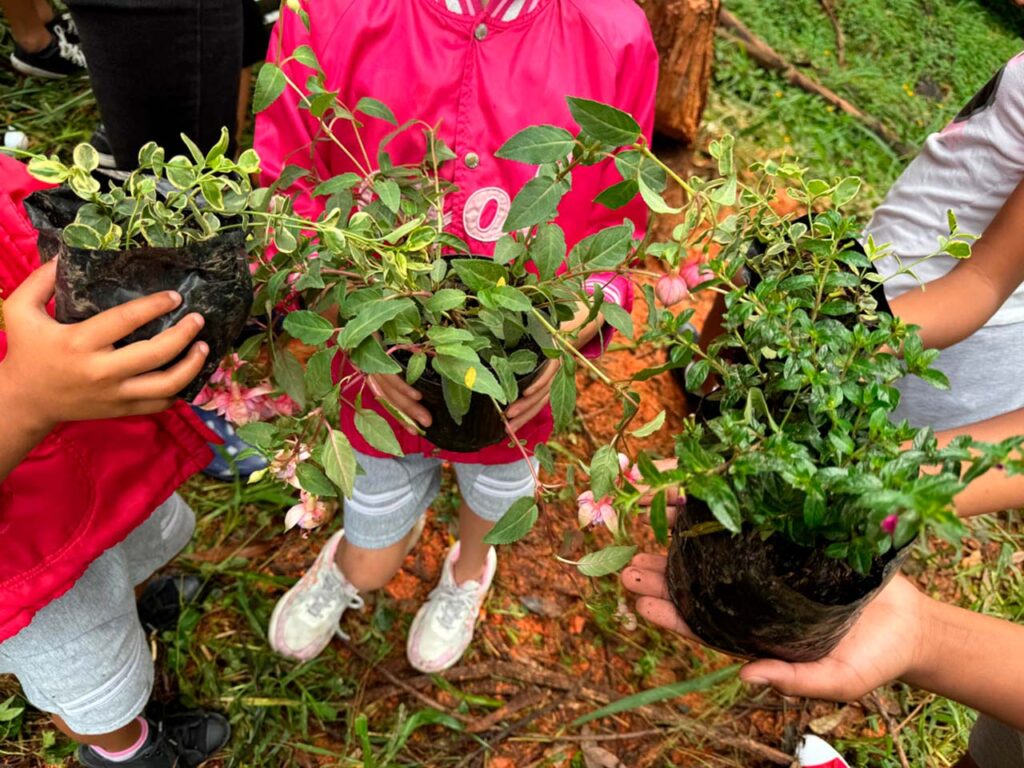 Los niños se dividieron en dos grupos: uno se llamó los jardineros; el otro, los guardianes de la naturaleza. Mientras unos recibían las plantas como barquitos, bailarinas, coquetas y siete cueros, los demás esperaban en fila, con los ojos atentos y las manos ansiosas por tocar la tierra.