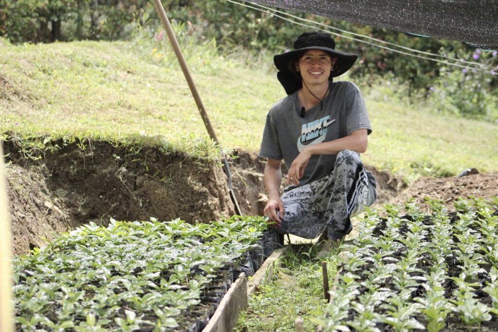 El trabajo de campo le ha gustado tanto a Simón que ya tiene sus primeros 500 almácigos (plántulas de café trasplantadas a bolsas plásticas para que se desarrollen hasta tener el tamaño adecuado para ser plantadas definitivamente en el campo) de variedades geisha y castillo amarillo, y pronto será productor, como su mamá y, por supuesto, proveedor de más granos para la marca propia de la familia.