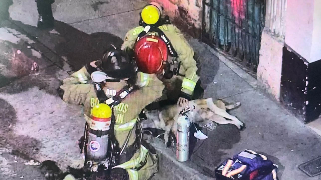 Las cámaras de videovigilancia, detectaron el inicio del fuego y facilitaron la activación inmediata de los organismos de emergencia. El registro audiovisual muestra cómo los bomberos ingresan al local, sacan al animal casi agonizante y le suministran oxígeno mediante una máscara especializada. Posteriormente, el canino fue estabilizado y recibió líquidos y alimento.