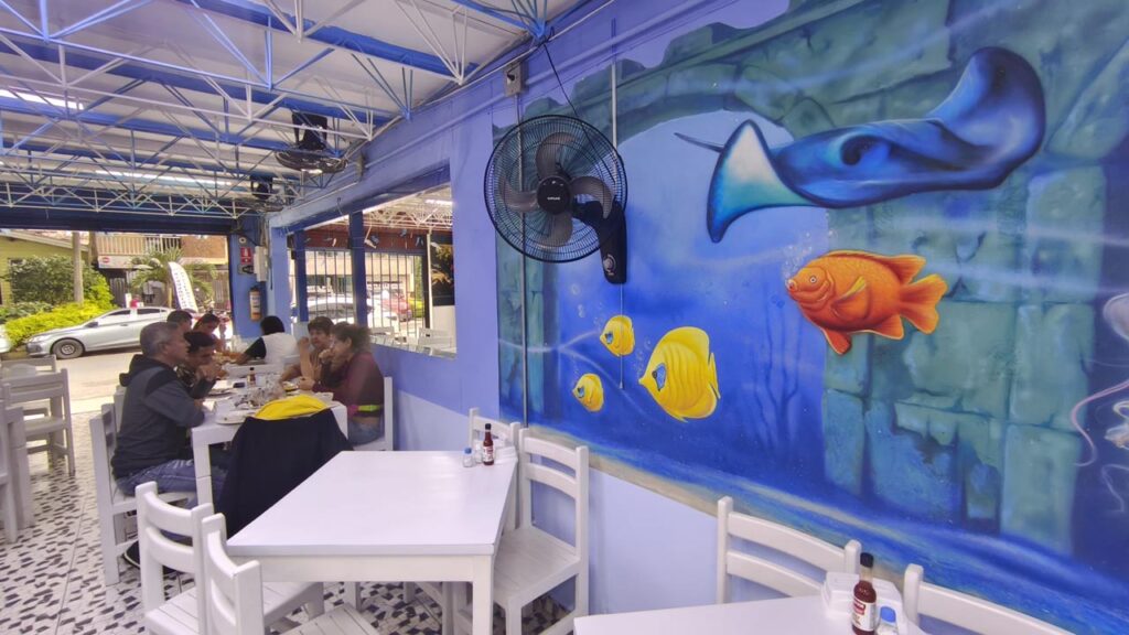 La costa está presente en todos los espacios del lugar. En su decoración, en el acento de quienes allí atienden, en la carta de comidas y hasta en la forma particular de celebrar los cumpleaños a los comensales, con una adaptación que Diana y sus colaboradores hicieron del tradicional happy birthday, poniéndole ritmo guapachoso y la alegría propia del costeño. «Que cumplas muchos años, que seas muy feliz, muy feliz. Que consigas un novio bien bonito, que no sea feíto, todito para ti, para ti. ¡Que los cumplas feliz, feliz! ¡Que los vuelva a cumplir, cumplir! Que lo sigas cumpliendo hasta el año sin fin», dice esta canción, que alegra el ambiente y así suena: