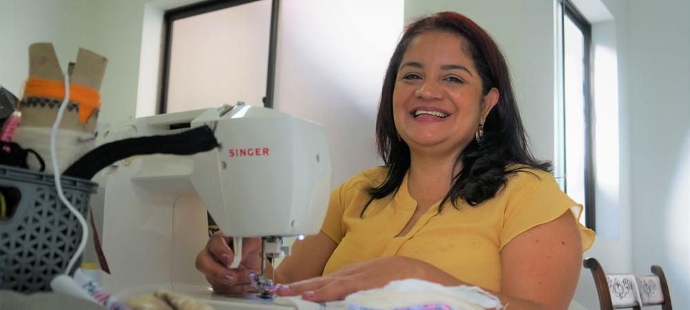Cristina Castillo, habitante de la comuna 13 de Medellín, produce y vende tapabocas, sábanas y prendas de vestir. Con la línea de crédito Redes Vecinales del Banco de las Oportunidades, Cristina pudo sostener su emprendimiento el año pasado en plena pandemia. Como ella, 250 mujeres tendrán este año la oportunidad de obtener el crédito y potenciar sus ideas de negocio ¡Tú puedes ser una de ellas!