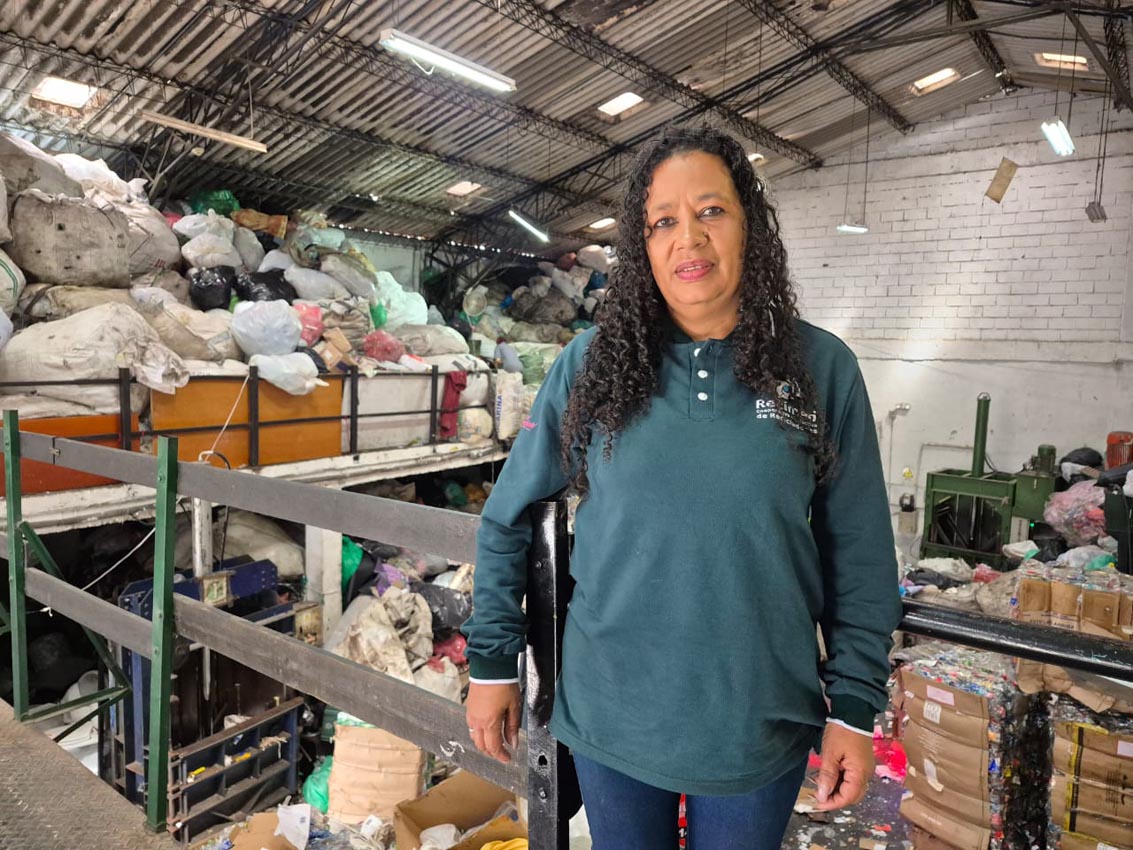 Gilma Saldarriaga trabaja en el acopio de Recimed separando material reciclable.