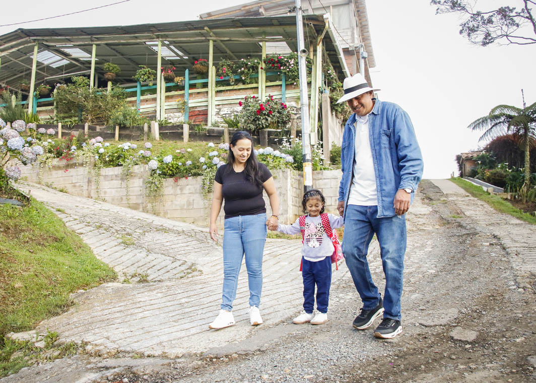 Muy atento y sonriente, como buen silletero de tercera generación, nos recibió Rodrigo Sánchez. De mano firme y mirada honesta nos invitó a pasar a su casa. Él, junto a su esposa Sandra Hincapié y su hija María Clara, nos esperaban para partir. Eso sí, no sin antes ofrecernos un delicioso café.