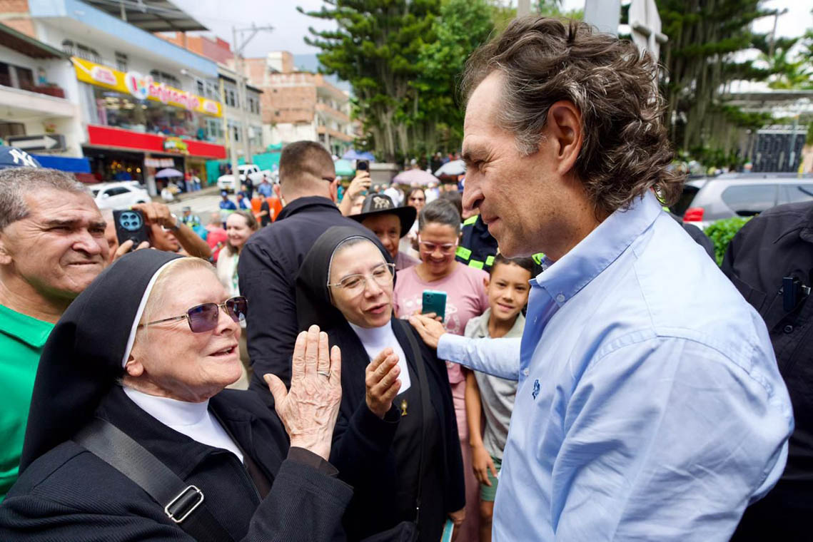 Imagen del Alcalde Federico Gutiérrez saludando a dos monjas y a la comunidad