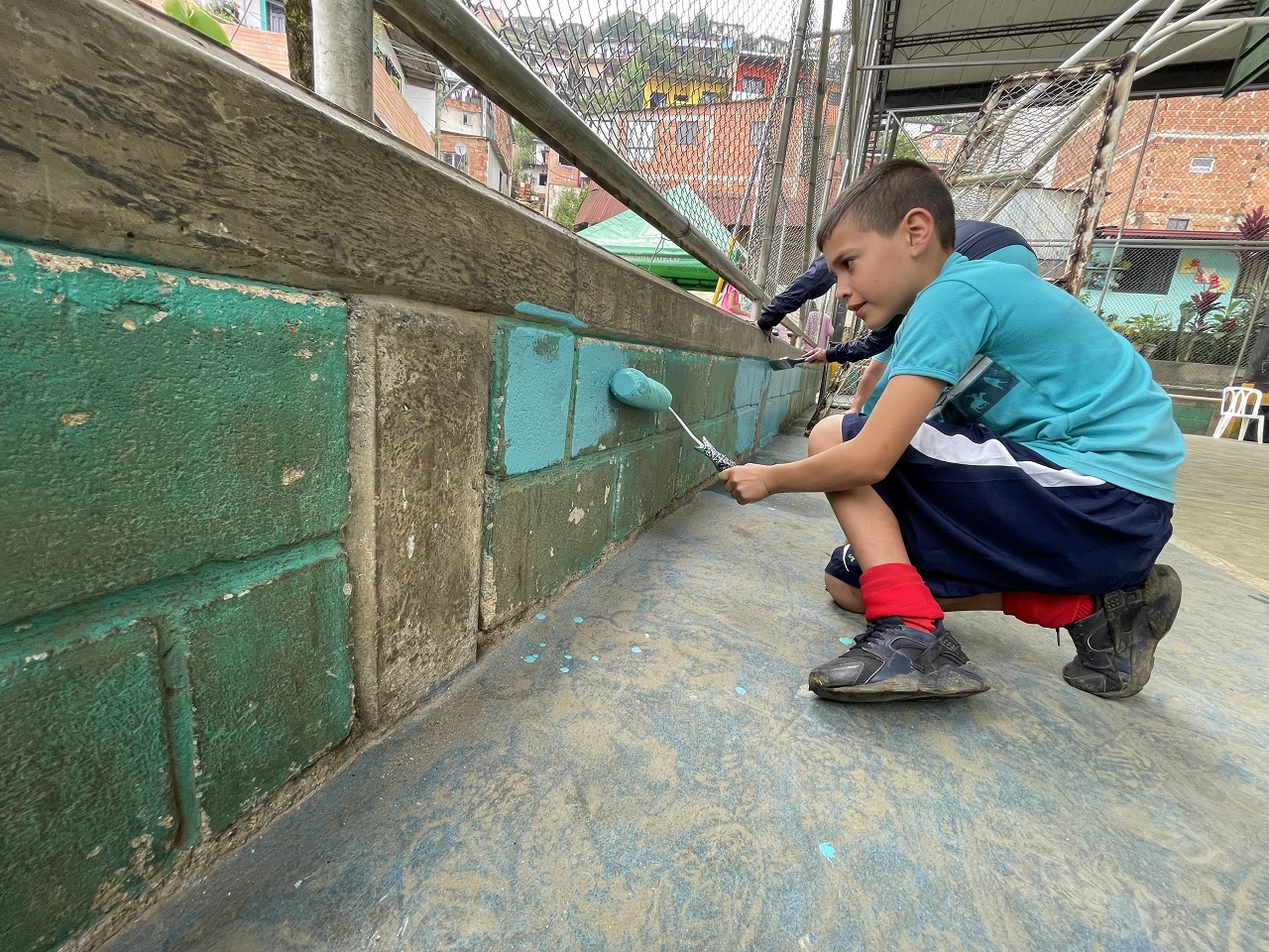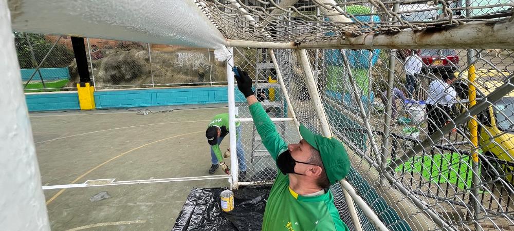 Las labores incluyen jornadas de pintura, soldadura, cambio de mallas en mal estado, arreglo de porterías, mejora de aros y tableros de baloncesto, ornato y aseo. Además, con el acompañamiento de diferentes dependencias de la Administración Municipal, se implementan otras intervenciones sociales que mejoran la seguridad, la convivencia y el medio ambiente.