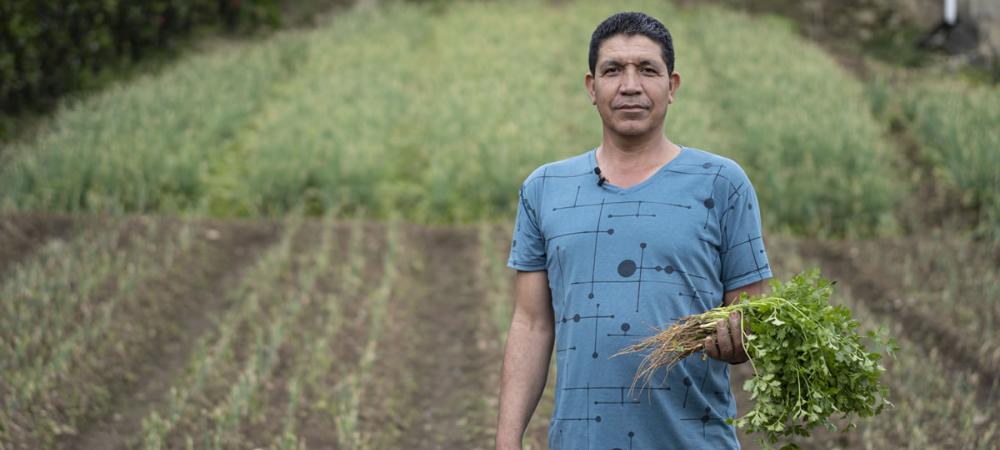 “En esta parte de la finca cultivamos cebolla, cilantro, espinaca y cidras. Estoy muy contento, porque a través del programa nos están ayudando a comercializar. Hoy empezamos con un nuevo proyecto de entregar unos productos que se han cosechado aquí en la vereda, que es el cilantro, espinaca y cebolla junca”, expresó Jorge Eliécer Villa, agricultor de San Cristóbal.