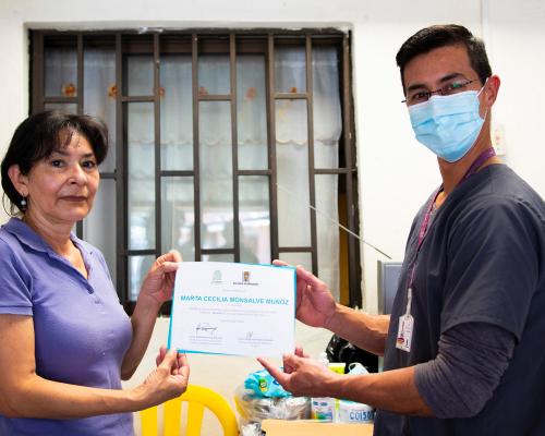 Los cursos de los últimos grupos, que iniciaron en diciembre de 2021, se realizaron de manera semipresencial y contaron con una intensidad horaria de 80 horas. La metodología de la formación también incluyó visitas a los hogares de los cuidadores en formación para conocer las necesidades de la persona mayor a cuidar. Se contemplaron, además, seis entregas de recursos económicos a cada beneficiario por un valor total de $2.214.894, para fortalecer la economía del cuidado.