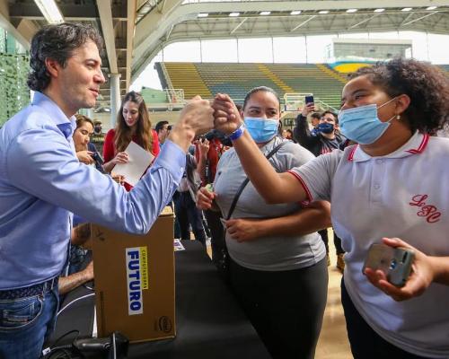 Queremos darles la buena noticia que seguimos con la ola de entregas de computadores en nuestro programa Un joven un computador, niño un computador porque creemos en ellos, porque creemos que con esos computadores ellos la van a sacar del estadio. Hemos cubierto ya cinco corregimientos y tres comunas. Creemos en el futuro de ellos”, expresó el alcalde de Medellín, Daniel Quintero Calle.