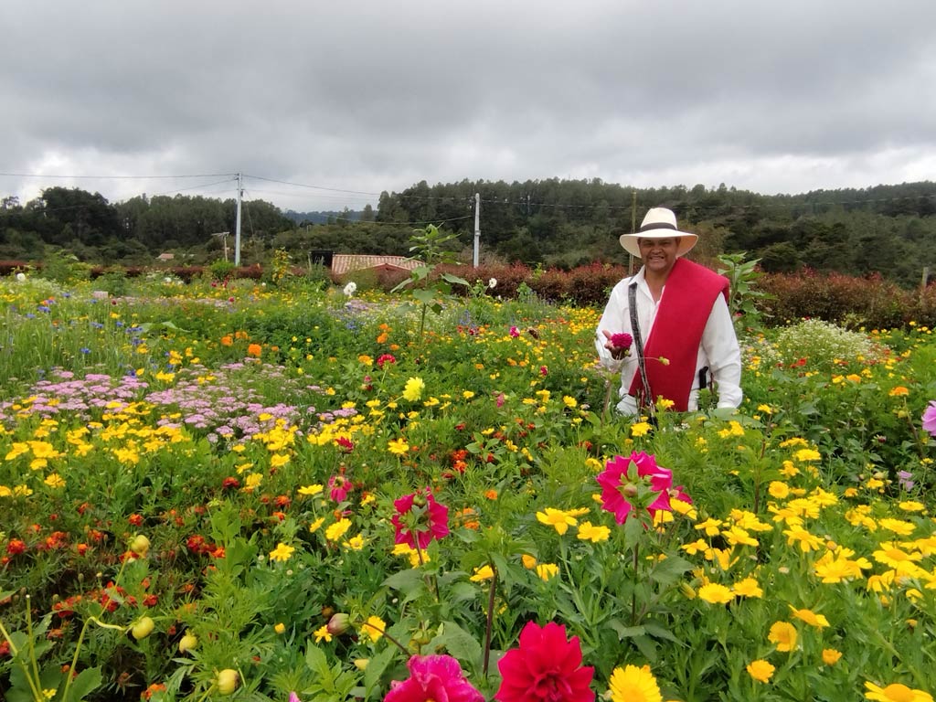 Gladiolos, dalias, margaritas, girasoles, clavellinas, astromelias, estrellas de Belén, siemprevivas y otras más, hacen parte de este tapete multicolor de flores nativas, como le gustan a él, cultivadas por Don José y su familia.