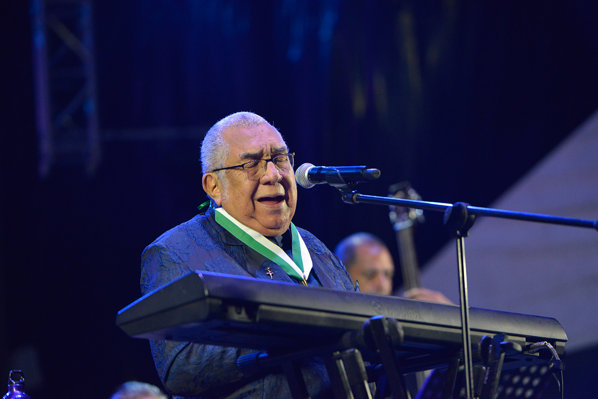 El show comenzó y desfilaron varios de sus éxitos musicales y luego de cantar Cascarrrabias -un tema dedicado a los padres y a los abuelos- se hizo un corte que estaba programado para hacerle un homenaje por parte de la Administración Distrital que le confirió -como tributo a su trayectoria- la máxima distinción que se entrega a un ciudadano: la Medalla Alcaldía de Medellín en categoría Oro.