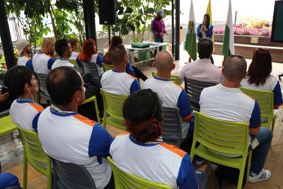 Jaqueline Marín Marín, de la secretaría de Inclusión Social Familia y Derechos Humanos y que hace parte del equipo de tenis de mesa femenino, fue la vocera de los deportistas al recibir la bandera de la ciudad y los uniformes deportivos de manos de la Administración Distrital. También la acompañó, Beatriz Elena Serna García de la secretaría de Suministros y Servicios y quien compite en la modalidad de Minitejo.
