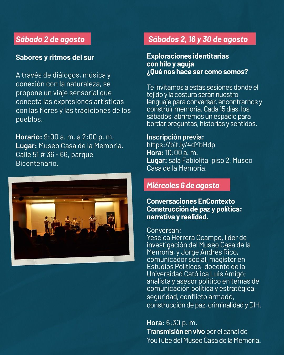 Consulta la programación completa: https://www.museocasadelamemoria.gov.co/programacion-mensual/