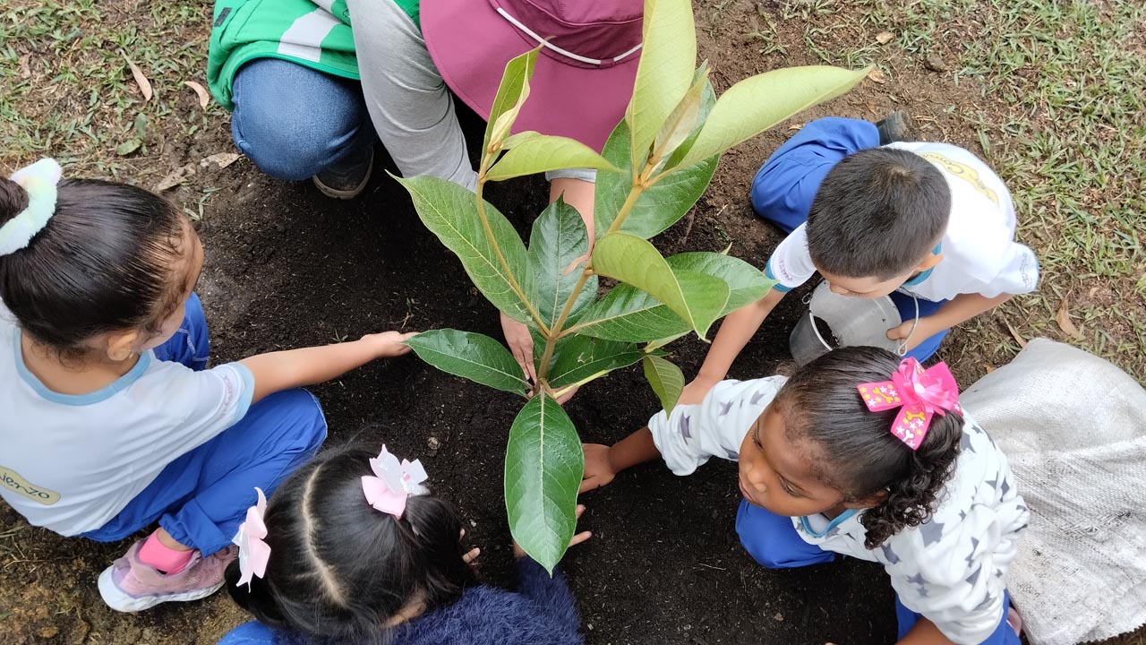 Y desde los más chicos hasta los más grandes, el compromiso de cuidar la tierra debe ser permanente, sino que lo diga María José una niña de cuatro años, que hace parte del grupo de estudiantes del Jardín Infantil de Buen Comienzo, Nuevo Amanecer, ubicado en el corregimiento Altavista, al suroccidente de Medellín, quien empoderada con la actividad programada por la Secretaría de Medio Ambiente sobre el Día de la Tierra dijo con énfasis: ‘La tierra la cuidamos con mucho amor’. Ella fue partícipe en ese momento de la siembra de dos árboles en el jardín infantil, llevaba su voz de cantante entre todos sus compañeritos y decía: “Solo necesitamos hacer un huequito, ponemos una semilla y después le echamos agua, sol y tierra. Hoy es el día de la tierra y tenemos que cuidar el agua. Yo cuido el planeta con mucho amor”.