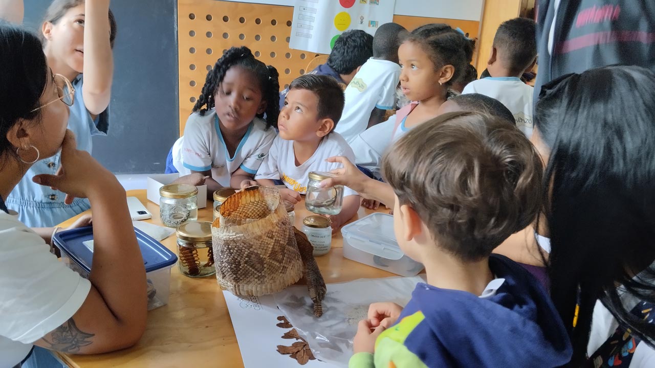 Cada pieza que veían, por ejemplo, los animales disecados que llevaron, fueron esos insumos que causaron admiración entre los niños y las niñas, porque nunca habían visto la piel de una culebra cuando muda de la misma o el caparazón de un cangrejo o los diferentes insectos que habitan en la tierra.