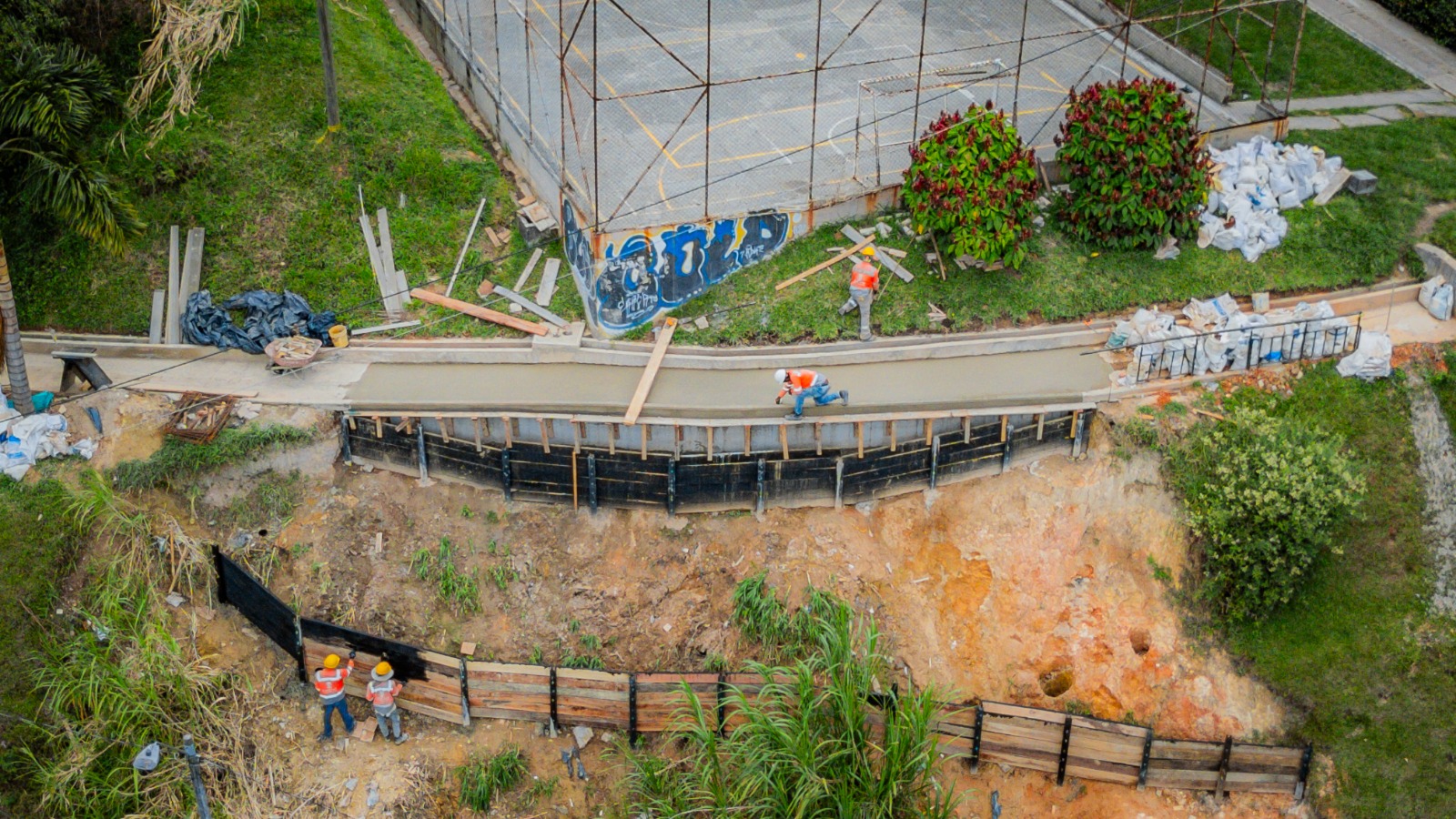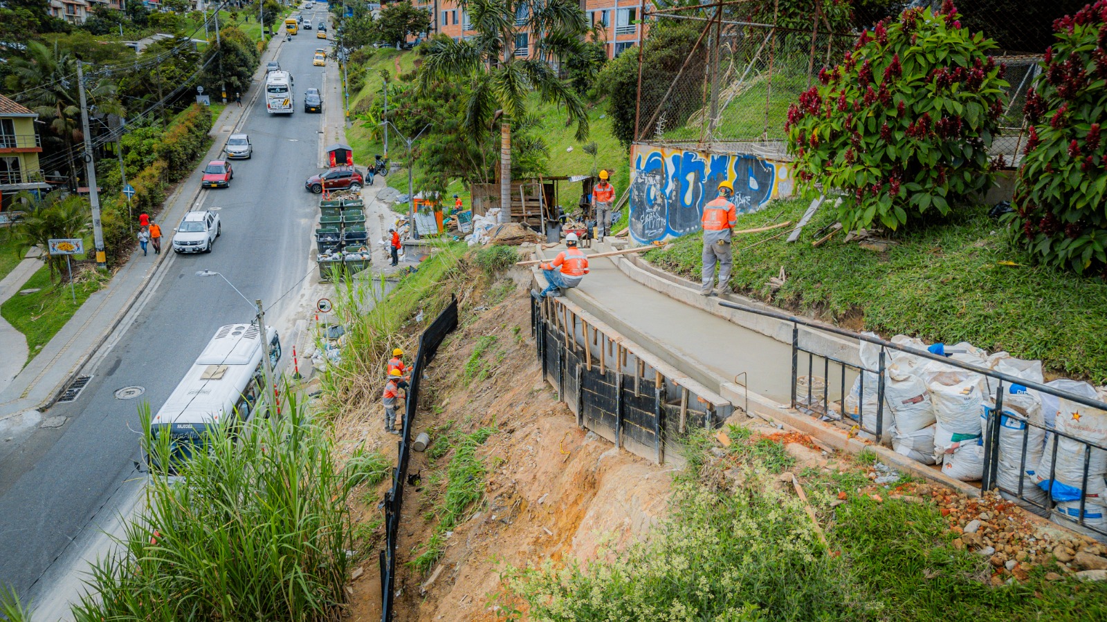 componente socioambiental para garantizar condiciones adecuadas en el entorno antes de iniciar las intervenciones. Las acciones previstas se centrarán en la construcción de muros de contención sobre taludes con condiciones de riesgo y en obras complementarias para el adecuado manejo de aguas.