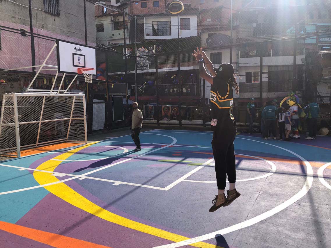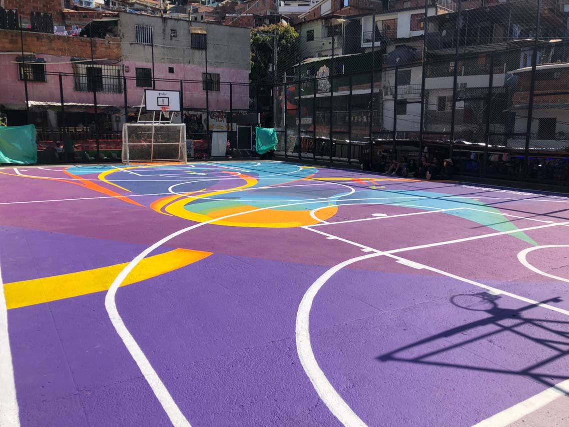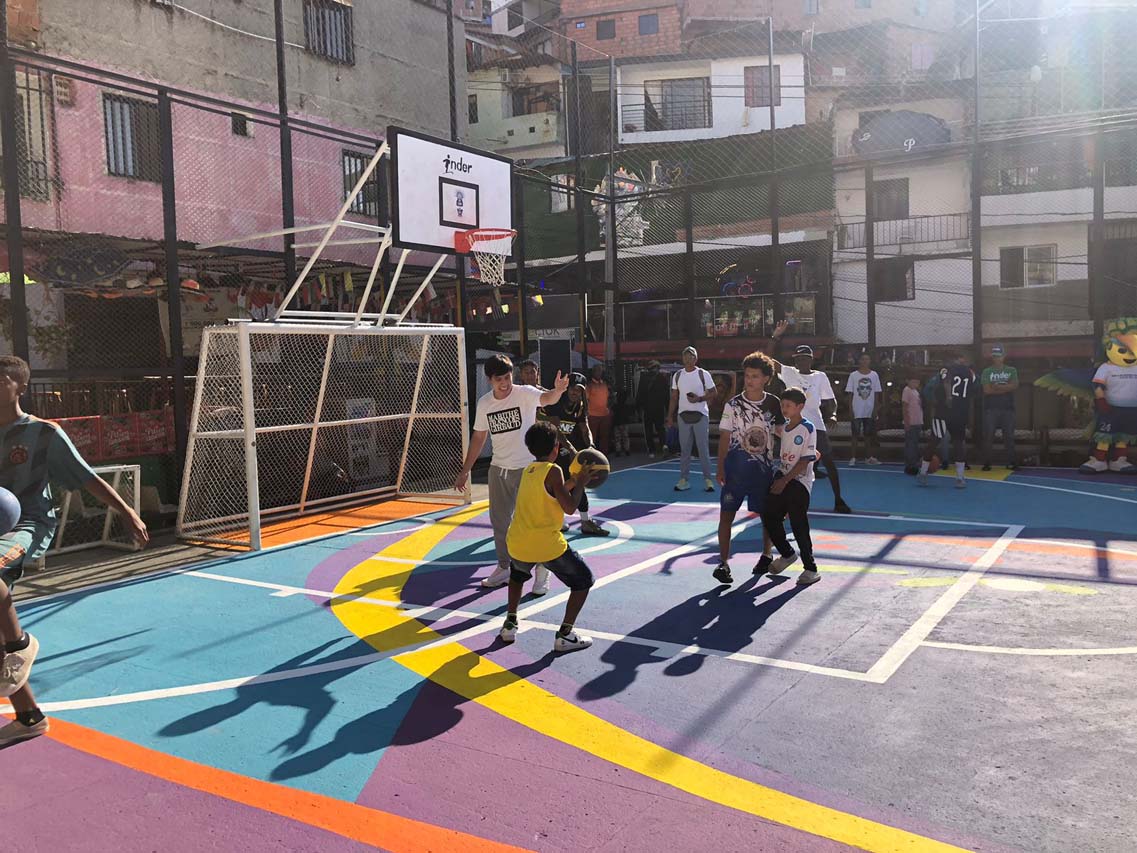 Andrés cuenta que todos los días, niños y jóvenes les preguntaban cuándo podrían volver a utilizar la cancha. Juan David Martínez, por ejemplo, tiene 16 años y vive en El Socorro, otro barrio de la comuna 13. Esta tarde de viernes se nota contento por volver a jugar micro y baloncesto en tan significativo espacio. “Vengo todos los días, quedó muy linda”, expresa el muchacho, estudiante de bachillerato, y añade: “El deporte y el arte nos sirven para evitar que la gente caiga en malos pasos”.