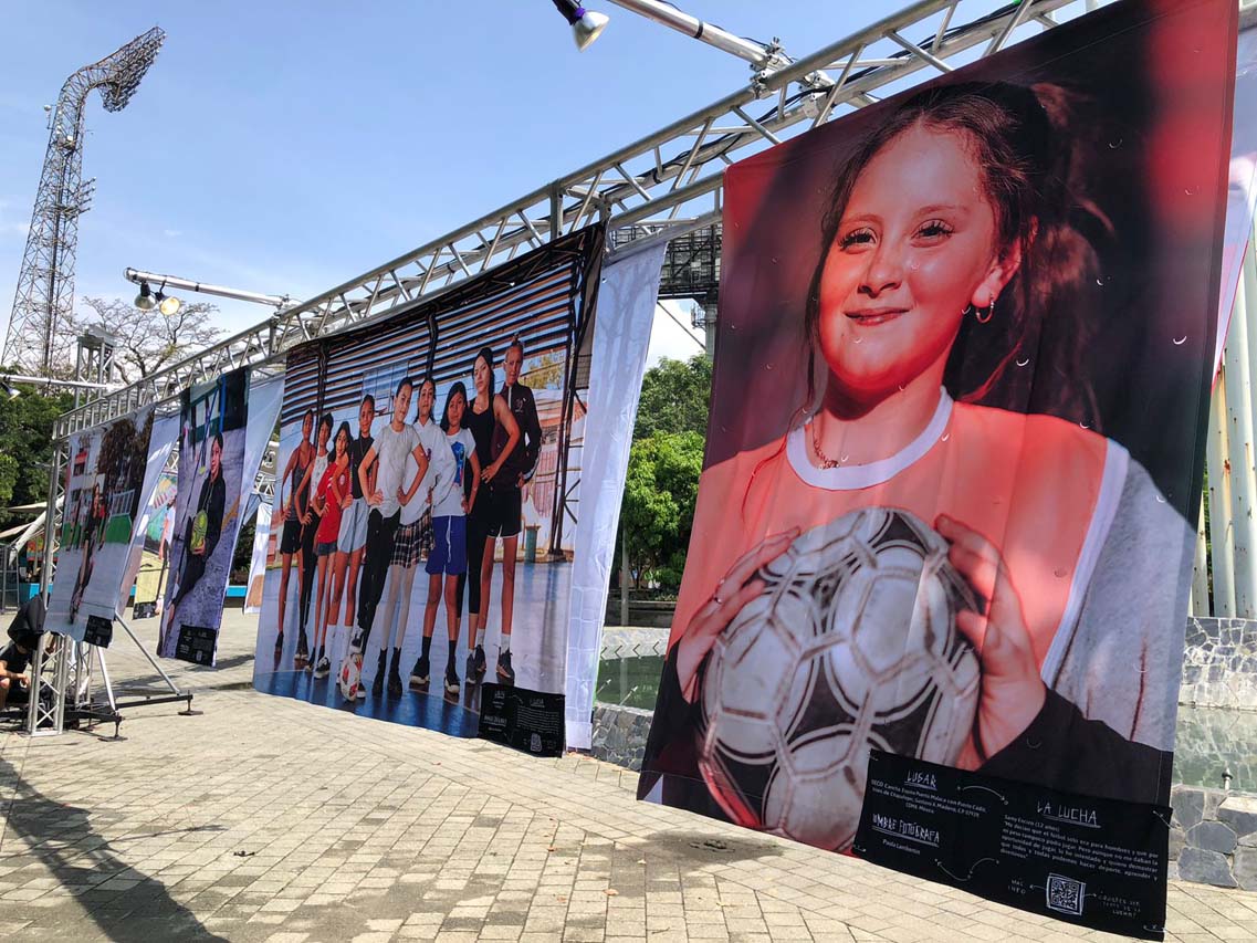Arte y fútbol femenino en el espacio público de Medellín. En la unidad deportiva Atanasio Girardot hay una gigantografía. Se trata de la exposición fotográfica En la cancha: mil mujeres, mil historias, sobre las mujeres latinoamericanas en el fútbol. Y en Junín, entre La Playa y Caracas, los ciudadanos pueden contemplar la muestra fotográfica Heroínas del fútbol antioqueño, que exalta a mujeres impulsoras de este deporte en Antioquia.