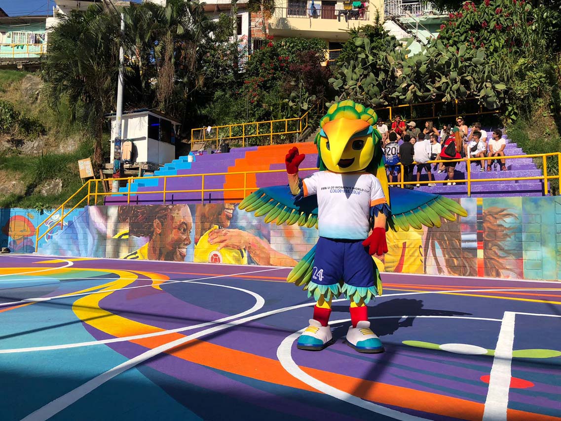 • Con murales de gran formato en la cancha de La Independencia N° 1, en la comuna 13, (barrio San Javier), una gigantografía en la unidad deportiva Atanasio Girardot y una exposición fotográfica en la carrera Junín, el arte se unió con el fútbol en la fiesta del Mundial Femenino Sub-20 de la FIFA.