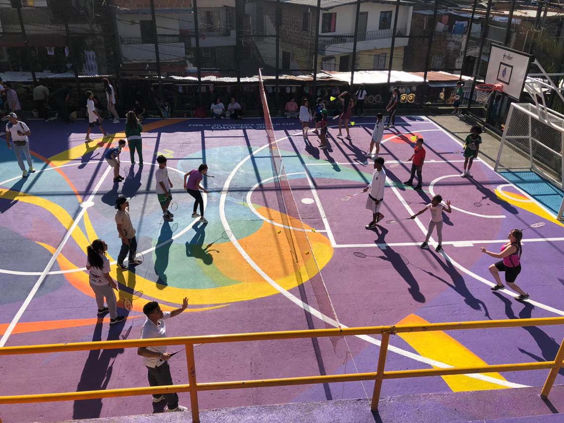 Por eso, ella y su hija Tatiana valoran tanto que hoy sus niñas jueguen bádminton con tranquilidad. La alegría de la muchachada haciendo deporte es la mejor manera de celebrar los coloridos murales de este polideportivo, que con el Mundial de Fútbol Femenino Sub-20 quedó como nuevo para acompañar los grafitis, la cultura, la vida toda de los barrios de la 13.