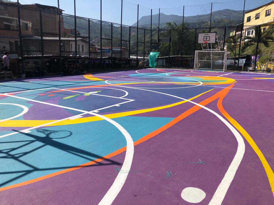 Andrés cuenta que todos los días, niños y jóvenes les preguntaban cuándo podrían volver a utilizar la cancha. Juan David Martínez, por ejemplo, tiene 16 años y vive en El Socorro, otro barrio de la comuna 13. Esta tarde de viernes se nota contento por volver a jugar micro y baloncesto en tan significativo espacio. “Vengo todos los días, quedó muy linda”, expresa el muchacho, estudiante de bachillerato, y añade: “El deporte y el arte nos sirven para evitar que la gente caiga en malos pasos”.