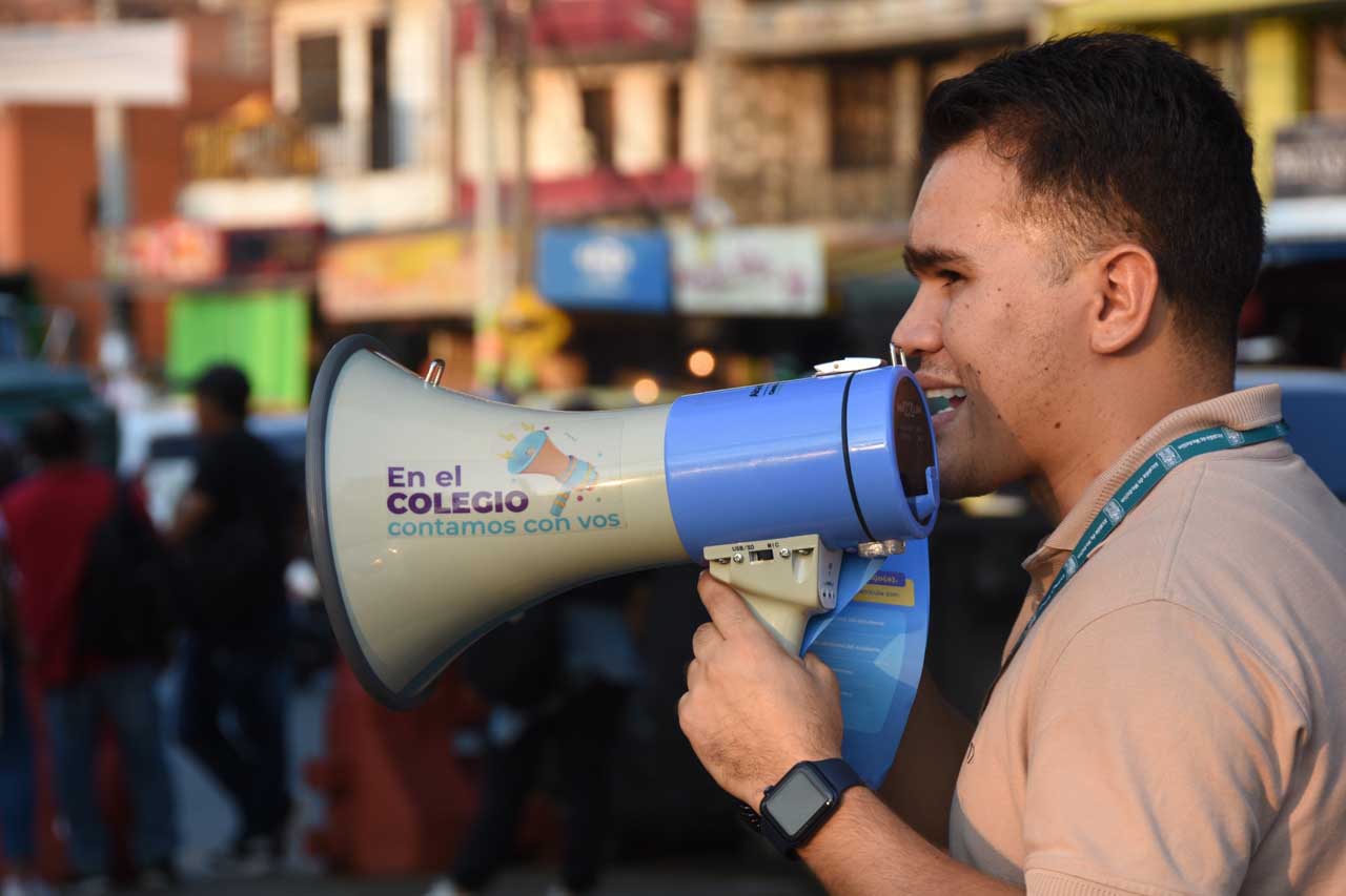 El equipo de trabajo de la campaña En el Colegio Contamos con Vos, responsables de las búsquedas activas, se agendan durante todos los días de recorridos para verse a las 7:30 a. m. en el Edificio Carré, en el Centro de Medellín, donde está ubicada la Secretaría de Educación. Sacan tablas de apoyo, lapiceros, el mapa que trazaron días antes y los megáfonos. Estas son herramientas fundamentales en el camino hacia la búsqueda de los niños, niñas y jóvenes que están sin estudiar.