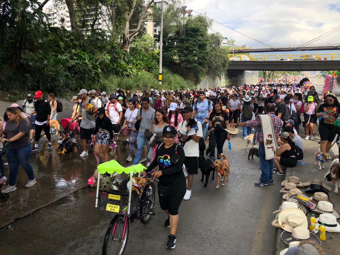 El recorrido comenzó a las 8:00 a.m. en la plazoleta de la estación Estadio del metro. Cientos de perros y algunos gatos. Amor, alegría y cuadras y cuadras de un río de gente con sus mejores amigos: sus mascotas.