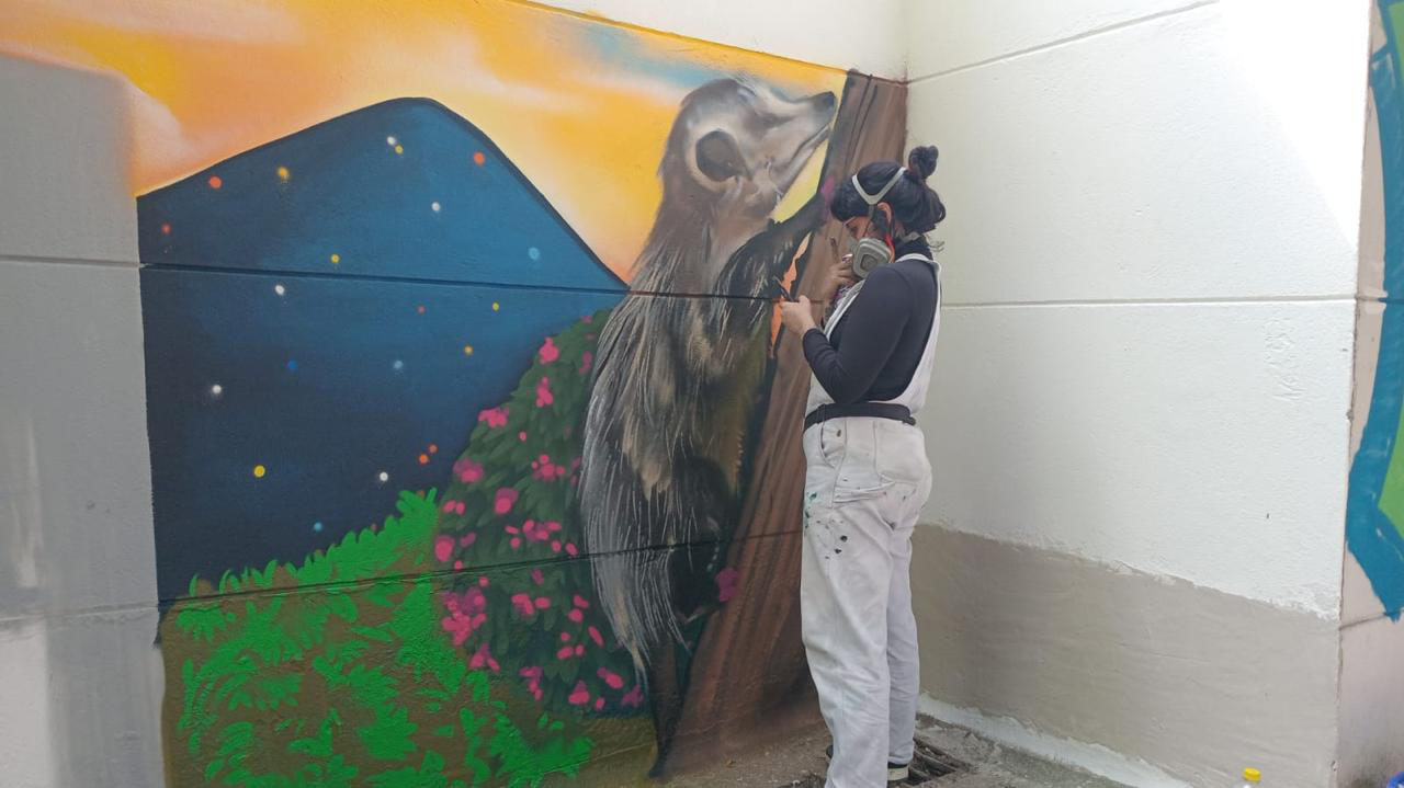 Se demoró tres días en plasmar su obra y recuerda que el primer día la visitó una zarigüeya y se dio cuenta que en esa zona son muy frecuentes, por lo cual también la involucró en su obra.