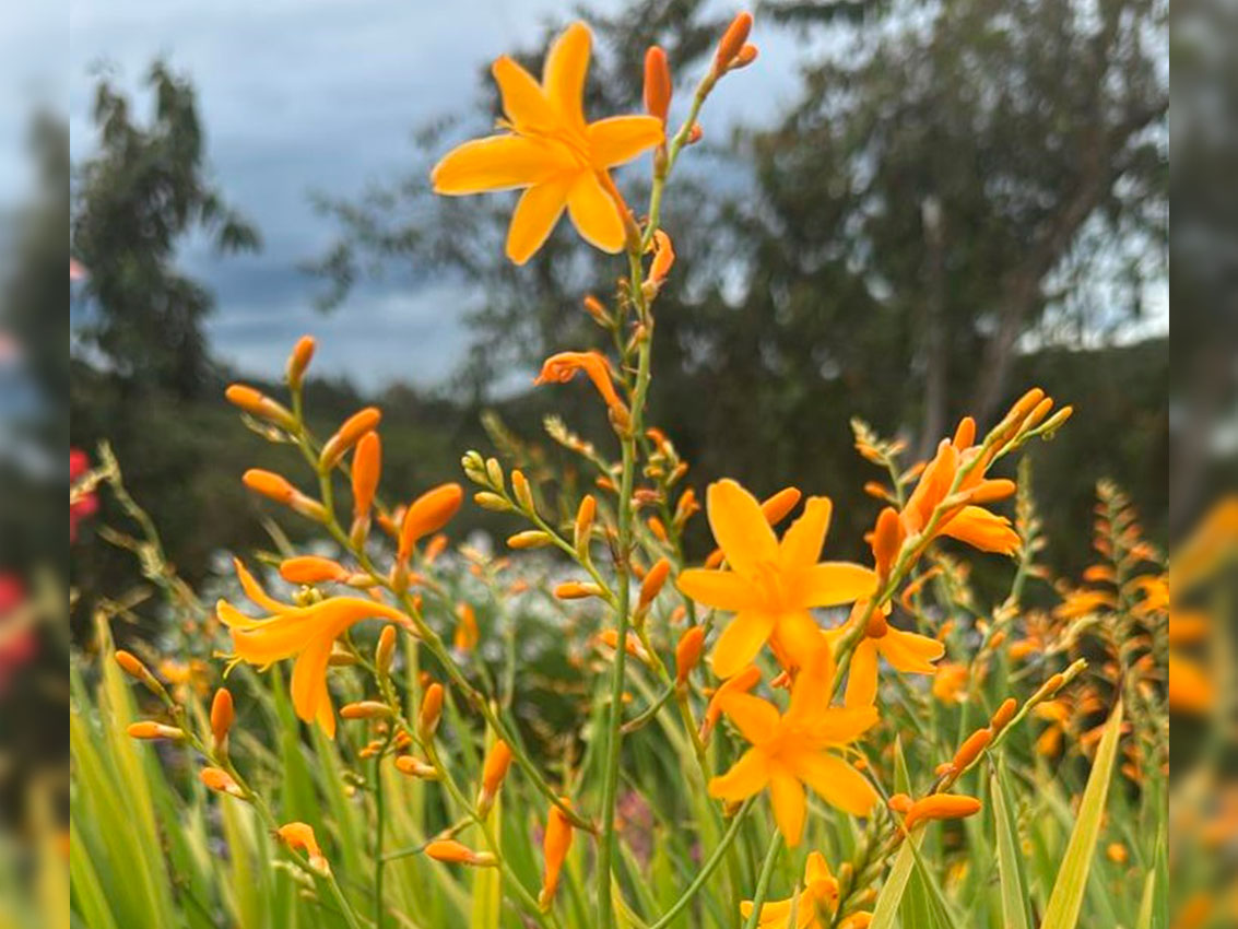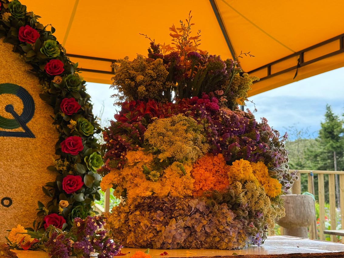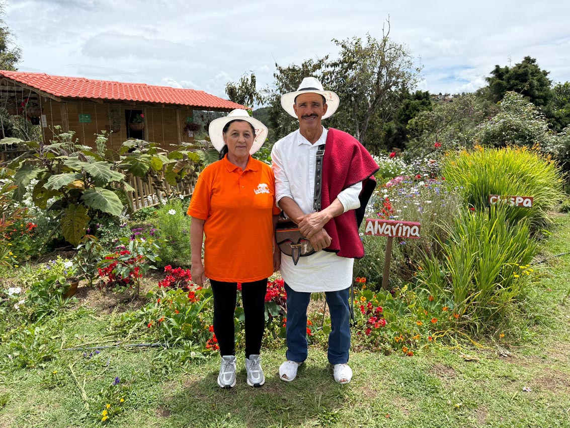 Salen del auditorio. Los anfitriones ahora llevan a los visitantes a recorrer el jardín. Les siguen mostrando las maravillas de las flores y de este territorio cultural silletero que es Santa Elena.