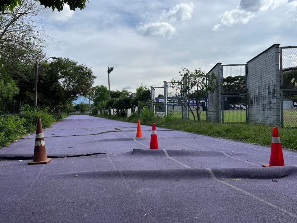 Por el estado actual, la pista representa un riesgo de caída para aquellos usuarios que asisten a diario. El INDER realizó una señalización para que la comunidad sea precavida y, de esta manera, se eviten accidentes y lesiones.