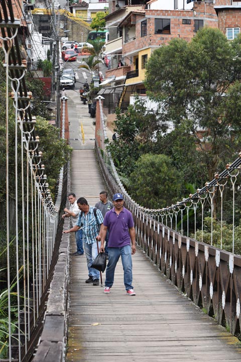Este puente es como nuestro teleférico -dice don Luis Fernández Grisales, habitante del sector-. Une a las veredas con el parque, con el comercio, con la escuela. Si se cae, nos quedamos incomunicados”.  Don Luis lo recuerda cuando aún pasaban las mulas cargadas de productos y cuando las procesiones de Semana Santa cruzaban de un extremo al otro con el Cristo al frente. Hoy, mientras señala las tablas agrietadas, insiste en que más que un paso, el puente es una historia que debe cuidarse.