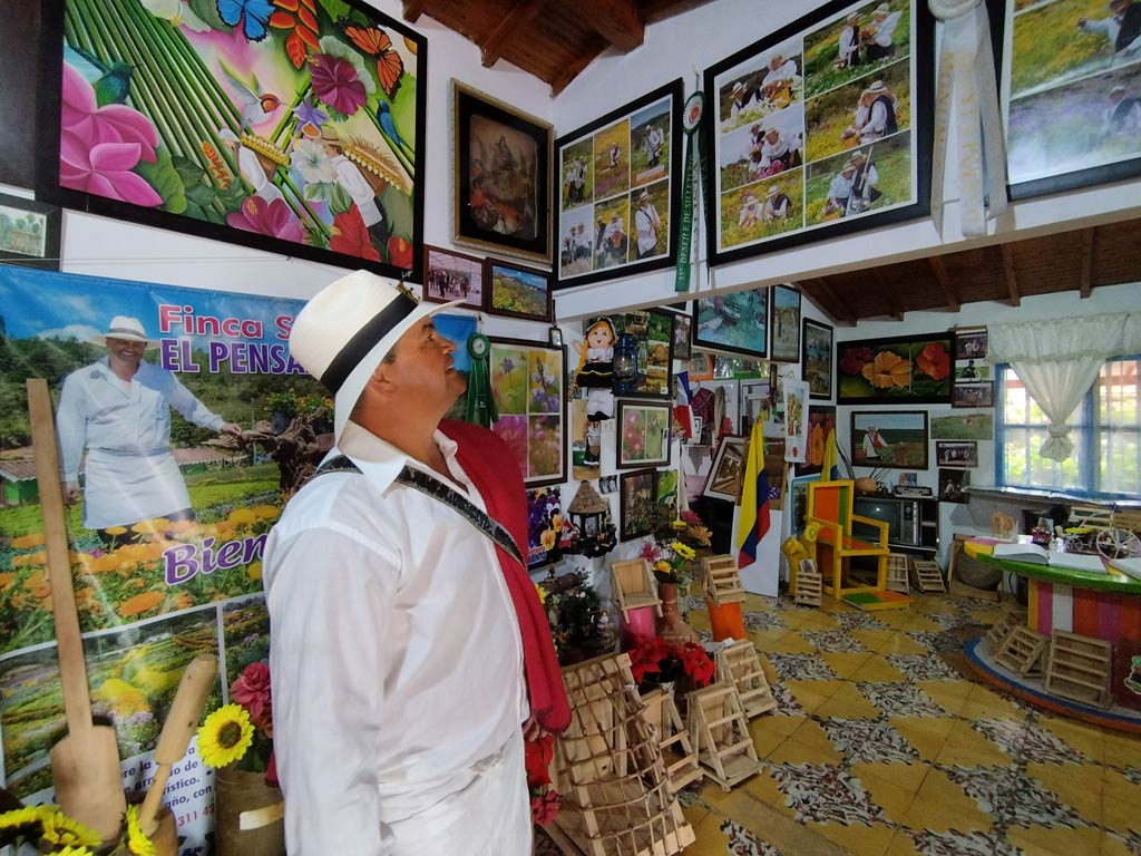 Él mismo les da la bienvenida a los visitantes. El recorrido inicia con un “canelazo”, bebida caliente que él les brinda para hacerlos entrar en ambiente. Luego les hace un paseo por el jardín, en el que explica el proceso de cuido de sus “consentidas” y allí aprovechan para tomarse sus fotos. Posterior a esto, les da la charla sobre la cultura silletera y les muestra cómo se hace una silleta tradicional y, de nuevo, las fotos para que se lleven de recuerdo. De allí pasan al pequeño museo que tiene en el lugar, en el que hay objetos, fotos de sus ancestros, recortes de prensa y diferentes artículos relacionados con la cultura silletera y, de ahí, se sientan a la mesa, en la que degustan unos fríjoles bien gustosos “con chicharrón que le dé la vuelta al plato, tajada de maduro, arepita y un guarapito bien sabroso”, señala sonriendo.