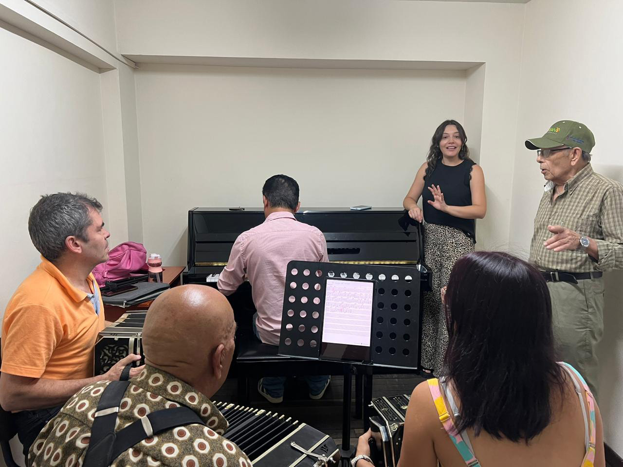 Allí en varios salones, el tango se manifiesta de diversas formas. Unos lo cantan y otros lo tocan con algún instrumento musical y siempre está la presencia de una profesora que vive pendiente de que todo esté en su punto para que los alumnos disfruten de este viaje musical por la llamada música porteña.