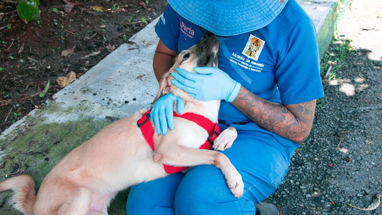 La historia de Pan comienza como muchas historias en esta ciudad: con un abandono. Llegó enferma al Centro de Protección y Bienestar Animal La Perla, que opera la Secretaría de Medio Ambiente de Medellín. Tenía parvovirus, una de las enfermedades más letales que puede tener un cachorro. Vomitaba, tenía diarrea con sangre y estaba al borde de morir. Los médicos sabían que las probabilidades eran bajas, pero ella no sabía nada de estadísticas. Solo sabía resistir y así lo hizo.