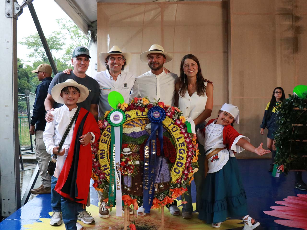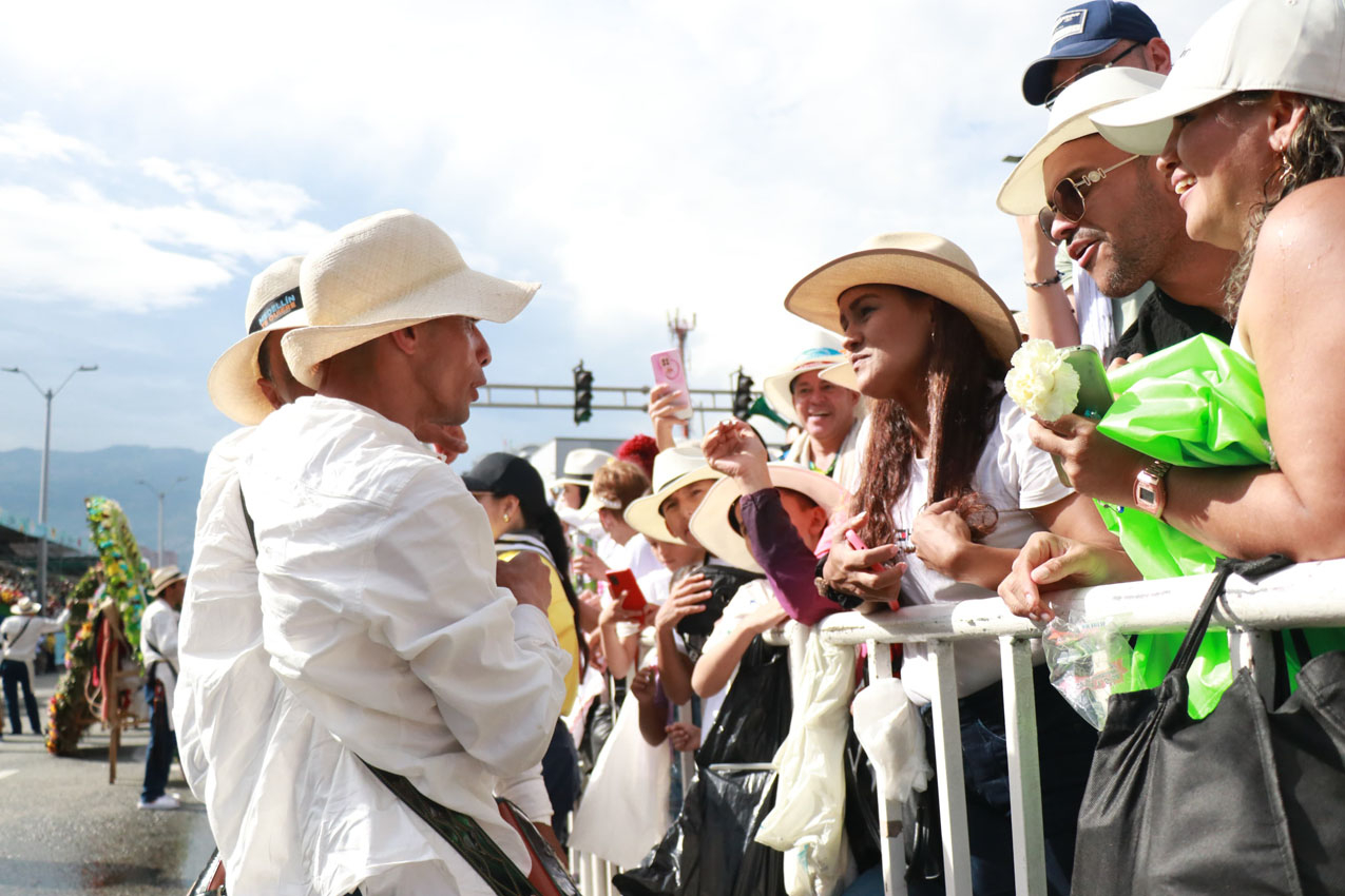 Observando y saludando a los silleteros, en primera fila, estuvieron el alcalde de Medellín, Federico Gutiérrez Zuluaga; la primera dama, Margarita María Gómez Marín; el gobernador de Antioquia, Andrés Julián Rendón Cardona; el jurado y Juana Soto Grajales «Juanita», una niña neurodiversa que se robó el show en el juzgamiento.