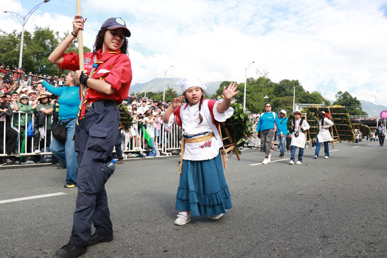 Poco después de las 2:00 p. m. escampó y empezó el desfile. 540 silleteros, el 70 % mujeres y el 30 % hombres, clasificados así: 430 adultos, 50 jóvenes (de 13 a 17 años) y 50 niños (de 4 a 12 años). Y los invitados de honor: 10 niños con neurodiversidad que, felices, desfilaron con los demás silleteros.