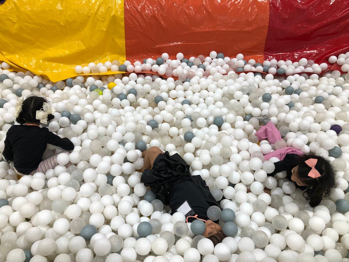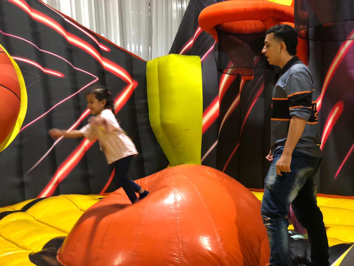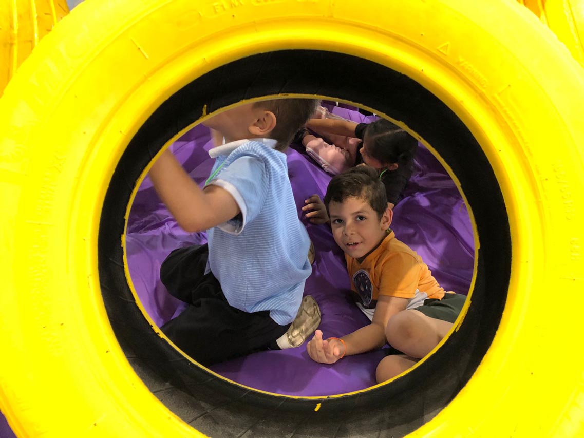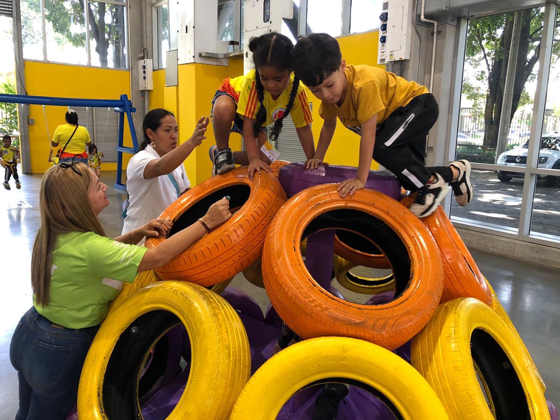 Y el pabellón Amarillo es el epicentro de los juegos. Entre ellos, el ‘Gato Lengüilarga’, la pista de bicis de la Secretaría de Movilidad, donde aprenden qué es una glorieta, por ejemplo; el inflable con palmeras y sol para que salten y se deslicen, el espacio de Emvarias para que jueguen y se formen en la limpieza y cuidado de la ciudad. “Medellín es un columpio y un sol”, dice la frase de Luciano, de cuatro años, en la entrada de este pabellón.