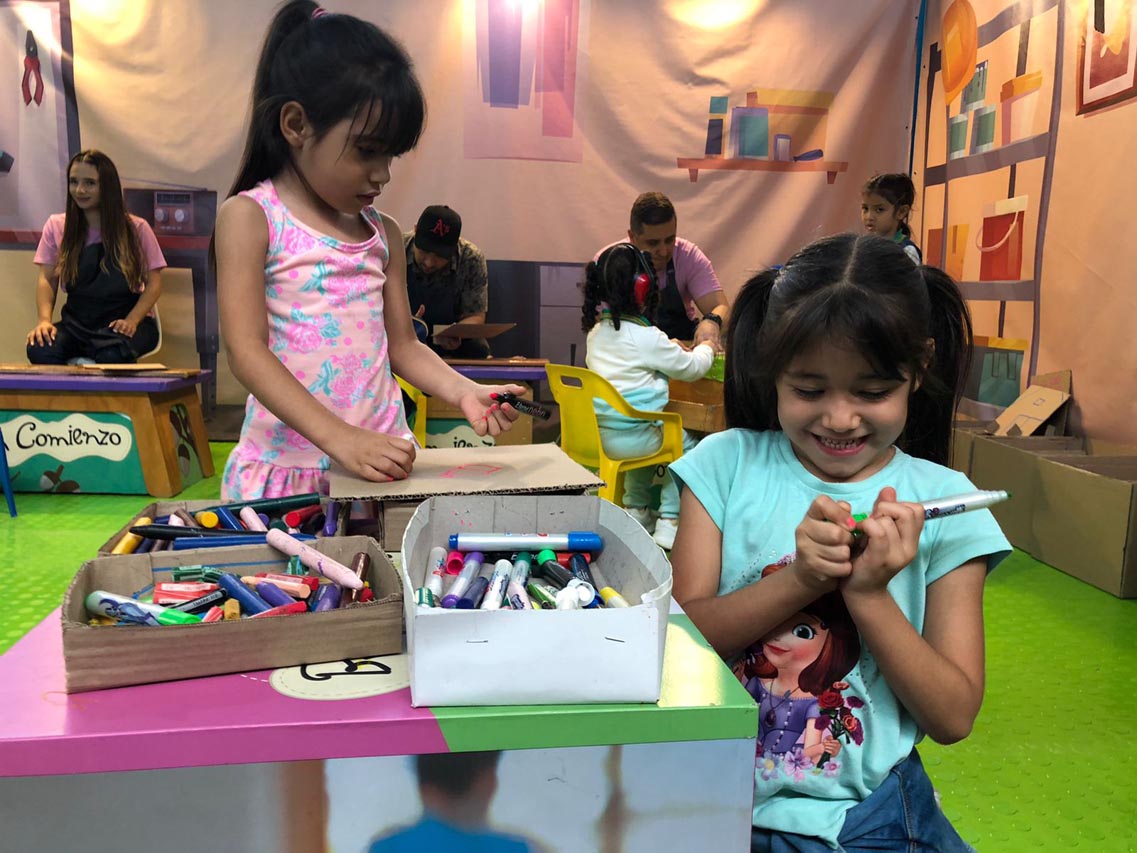 En la ‘La Cartonería’, Red de Artistas de Buen Comienzo, tienen marcadores, cartones, crayolas y otros materiales para que derrochen creatividad en sus obras, al tiempo que los instructores los apoyan.