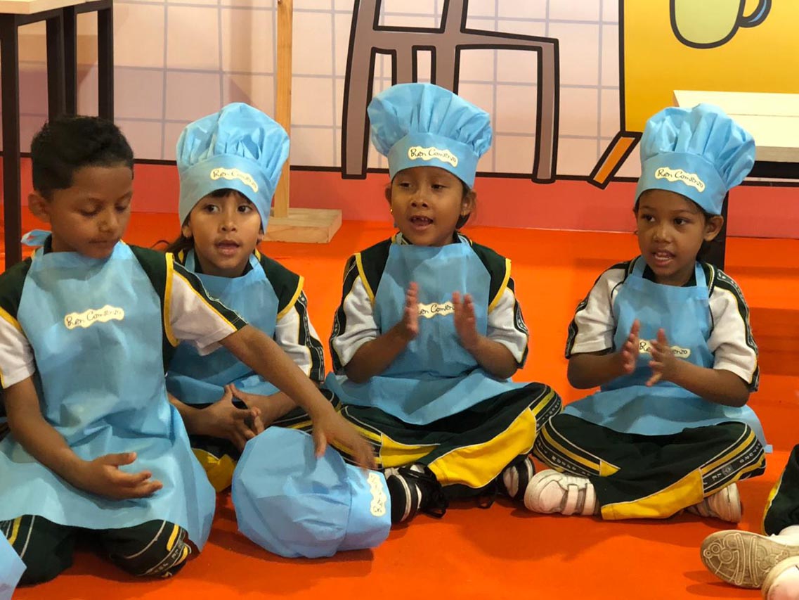 Hacer fila para entrar a las atracciones y estands es uno de los aprendizajes de los niños en el festival.