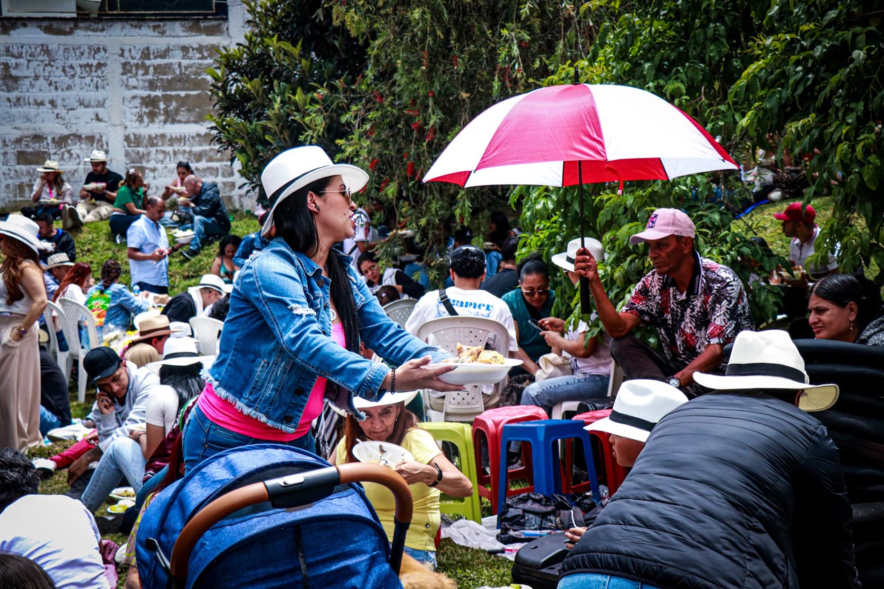Al mediodía, mientras miles de personas inundaron el parque y sobresalían los ponchos y los sombreros aguadeños, otras se sentaron en las mangas cercanas al coliseo o en mesas para comerse el sancocho.