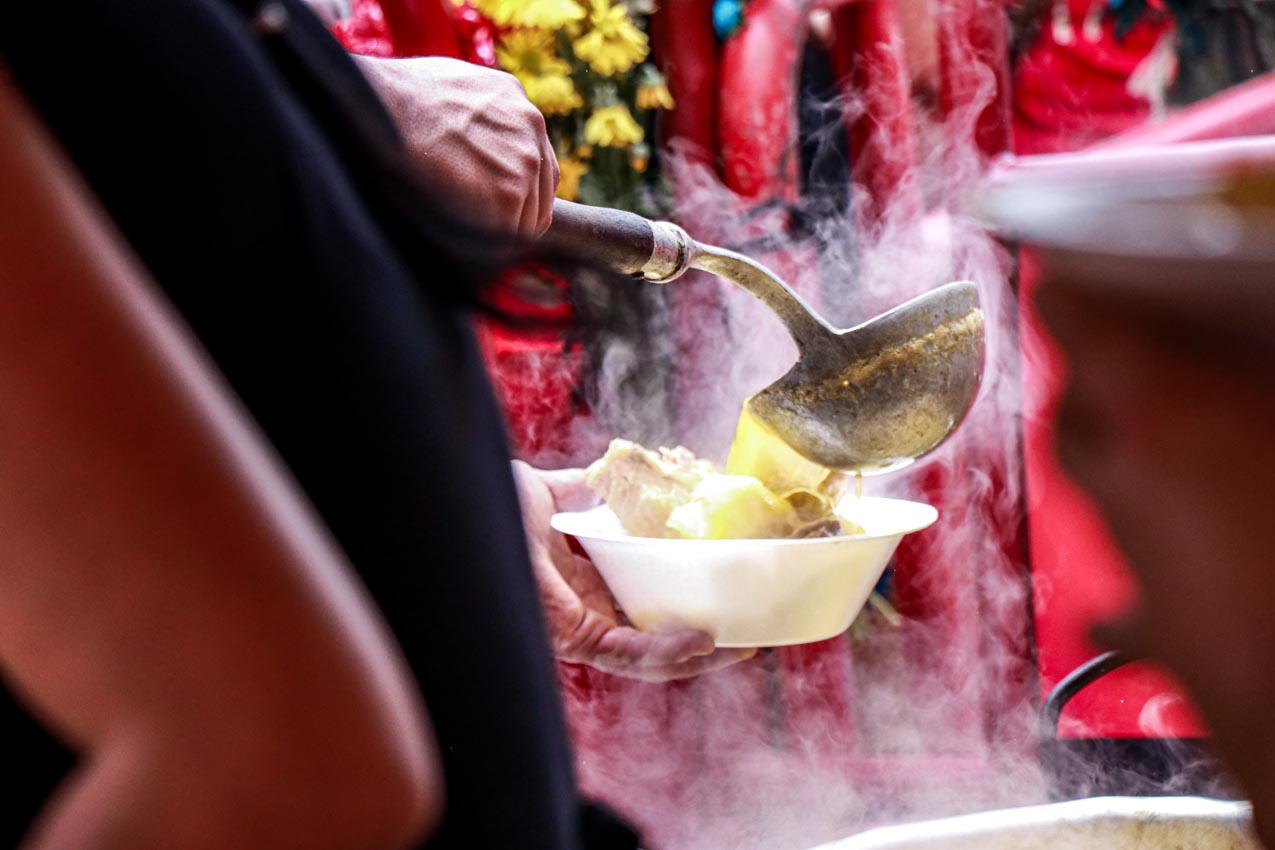 Ella calculó que en la jornada vendería unos 350 sancochos. “Tengo clientela y fama. Hoy espero cuatro chivas (buses escalera). Dicen que les gusta venir donde Los Monos”, apuntó esta mujer de 49 años, para quien el sancocho une las familias, da buena salud, energía y calma el guayabo. “En una hora empiezo a despachar y nos vamos a las 11:00 o 12:00 de la noche”, anunció a eso de las 10:30 a. m._ ¿Y mañana lunes descansa?