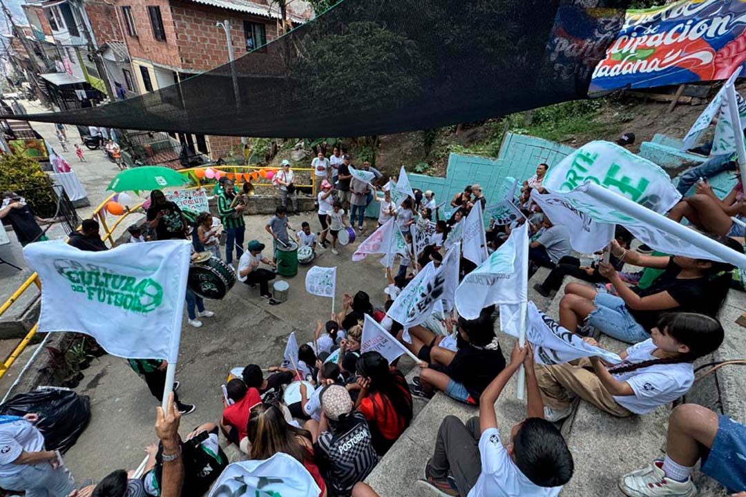 Pequeñas grandes acciones que ayudan a la transformación de nuestros territorios, en este caso, un lote baldío y olvidado, que hoy, luego de un proceso de liderazgo comunitario, con el apoyo de la Alcaldía de Medellín, se convierte en un espacio para el encuentro, la cultura y el arte.
