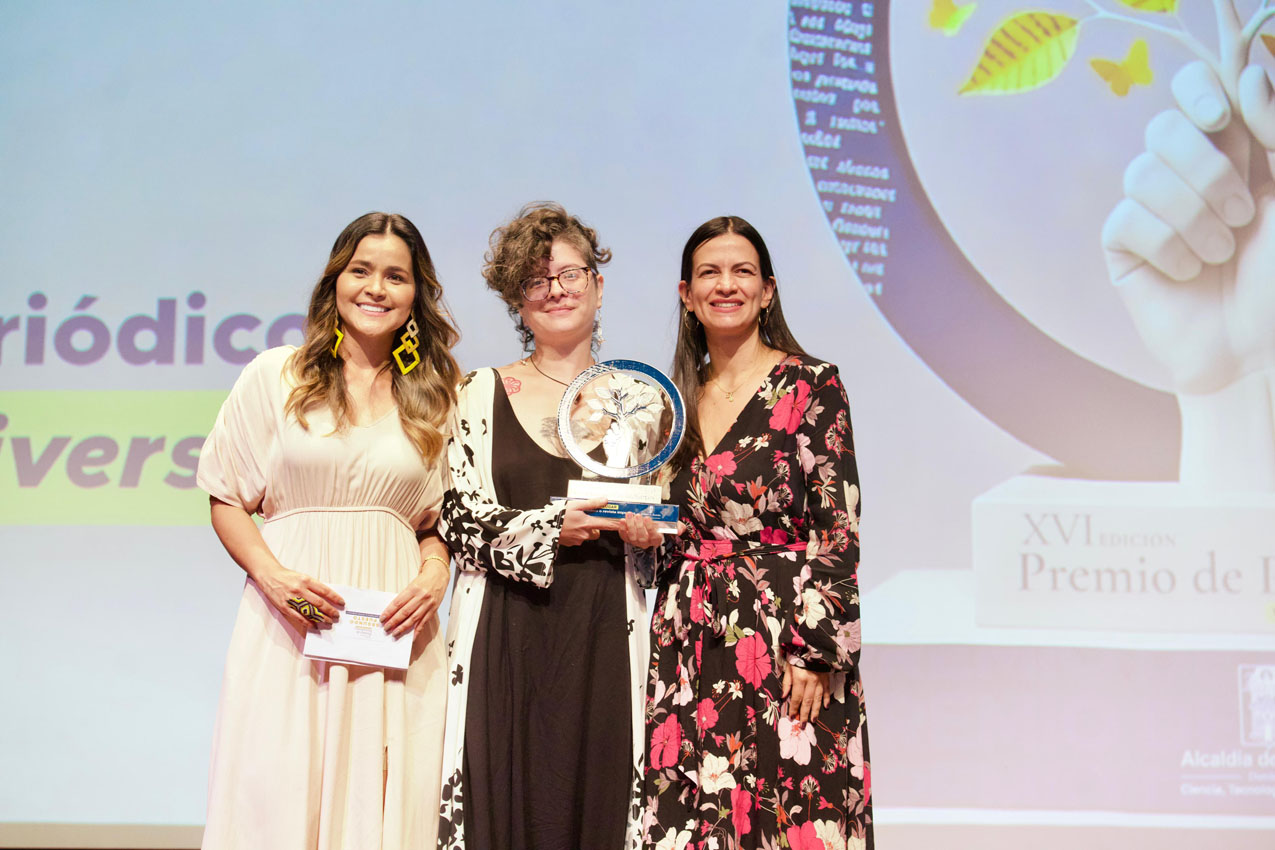 “Es muy bonito ver cómo todas esas cosas que nacen en un aula de clase trascienden y pueden llegar a un lugar del Distrito tan importante como los premios de periodismo. Nos sentimos muy felices, muy afortunadas y muy agradecidas con la universidad y también con los premios por brindarnos este espacio a nosotros, los universitarios, que apenas estamos en este ejercicio de construcción”, expresó Valentina Giraldo, quien, además, es parte de Interactuando con la 9 y Vive la 9, medios comunitarios de la comuna nueve (Buenos Aires): “Me encargo de la toma de fotografías, de los artículos y en ese camino también me he convertido en una lideresa social del territorio, que ha sido lo más bonito de todo”.