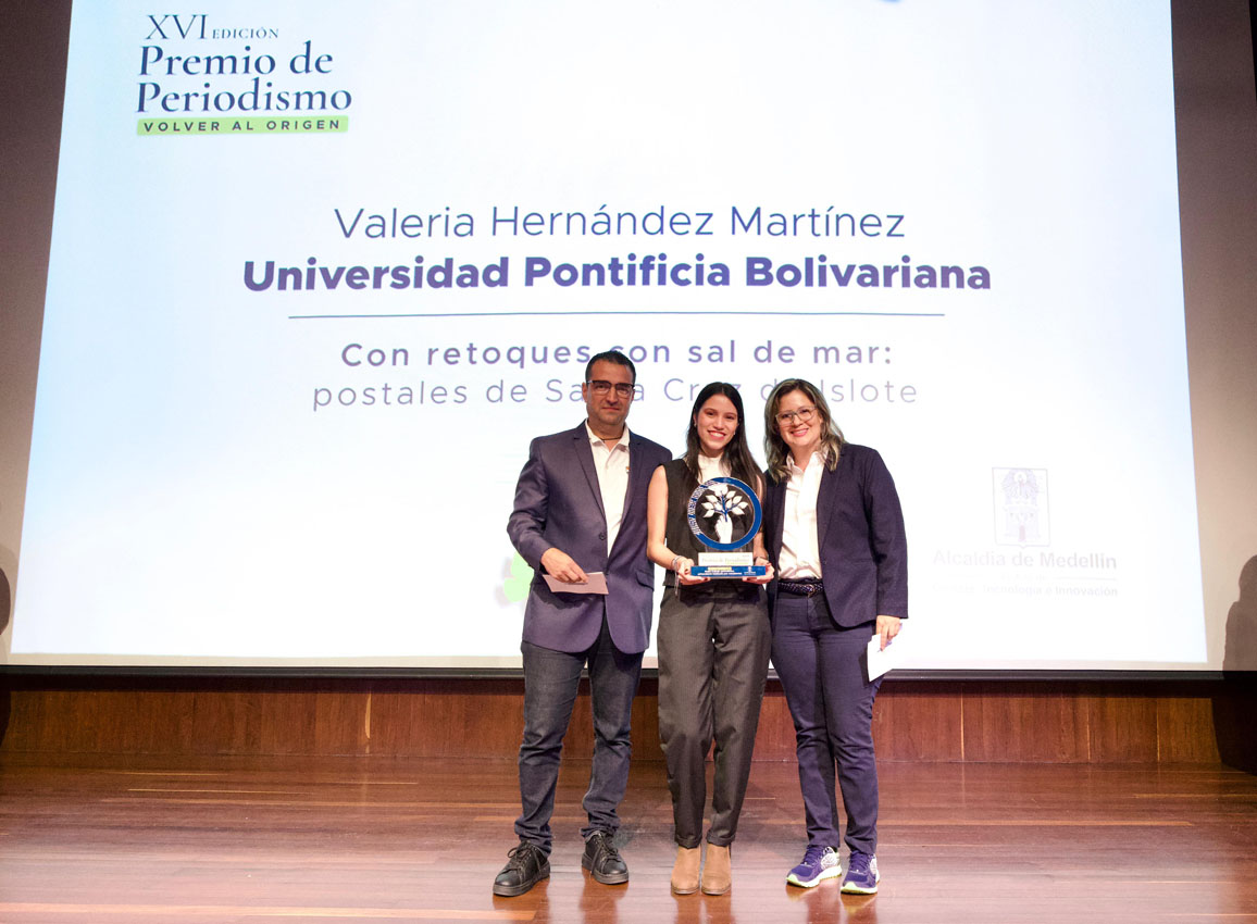 En Mejor trabajo periodístico universitario realizado por estudiantes, el primer puesto se lo ganaron María Camila Madrid, Valentina Giraldo, Jhonatan Muñoz y Salomón Jaramillo, de la Universidad Católica Luis Amigó, y el segundo, Valeria Hernández Martínez, de Contexto de la Universidad Pontificia Bolivariana.