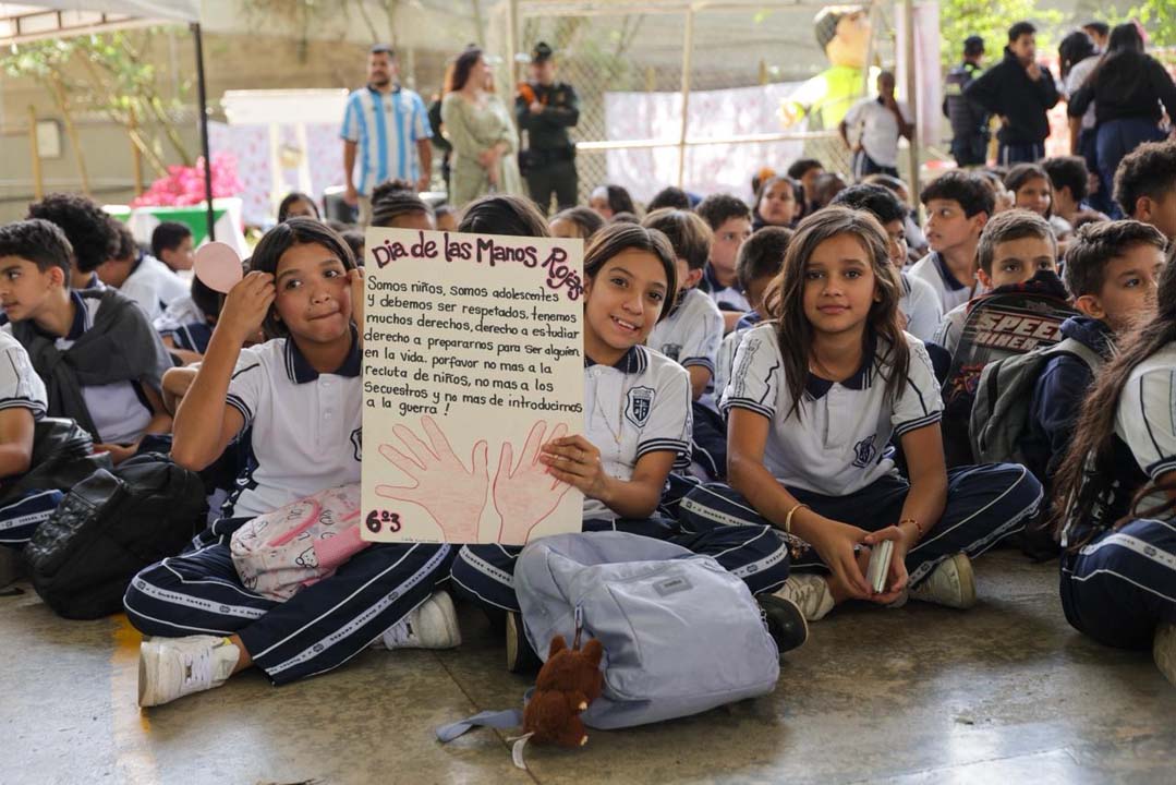 El Distrito de Medellín conmemoró el Día Internacional de las Manos Rojas, reafirmando su compromiso con la protección de niñas, niños y adolescentes en la prevención del reclutamiento, uso y utilización en contextos de violencia.