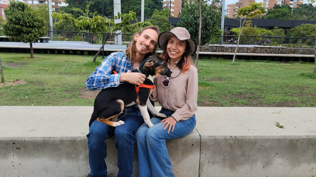 Randy y Ana María viven en Robledo-Córdoba, muy cerca del Hospital Pablo Tobón Uribe. Desde hace quince años comparten su vida y sus alegrías con una perra llamada Sasha, quien se encuentra en la última fase de su vida y por ello, quieren que ese último tiempo esté también al lado de un perro y este se llama Turrón. Un nombre muy particular, pero que los cautivó desde el primer momento que lo vieron: “Nos llamó mucho la atención la personalidad del perro, porque cuando pasamos en la celda donde estaba, entendimos que uno no los elige a ellos, sino al contrario. Lo vimos súper atento con la muchacha de los cabanitos y nosotros dijimos, es muy pilosito. Nos quedamos viéndolo y él fue el que nos gustó. Y más porque es negrito y ese es el color de los perros que menos adoptan”, dijo Randy con una sonrisa, mientras cargaba a Turrón.