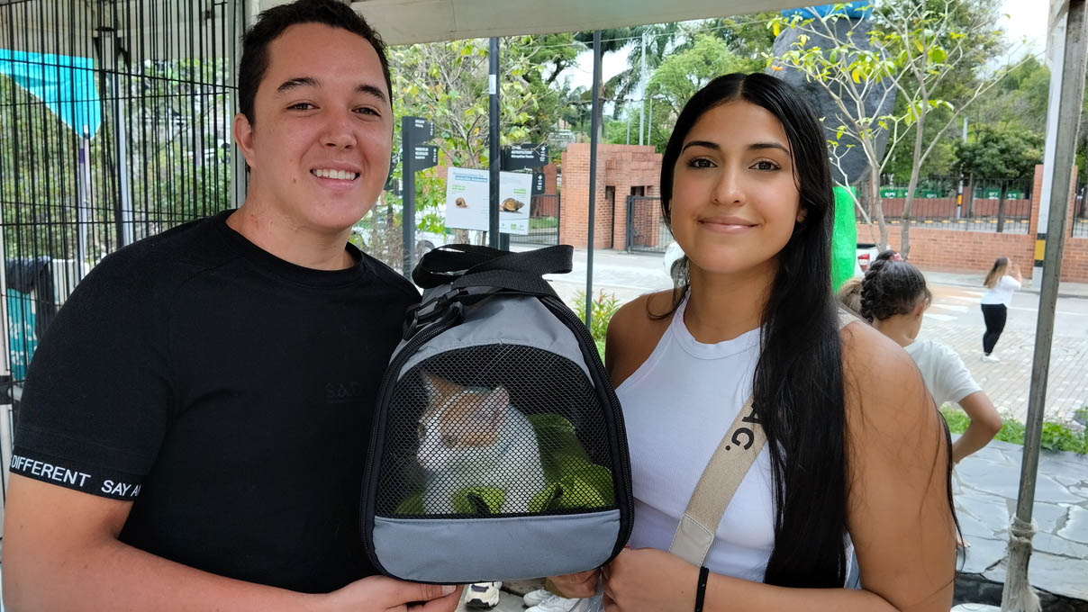 Cristian dice: “De hecho veníamos por un gatico, pero ya mirando que hay tantos gaticos, también nos enamoramos de un gato más grande. Y tomamos la decisión de llevar dos gatos, uno más pequeño y otro más grande. Obviamente, lo más importante es darle amor y este es el gran paso para tenerlas y darles muchas cosas que tanto necesitan. Porque ellas necesitan, amor, compañía y cuidado y con esto, lo que queremos es enseñarles a nuestros hijos que esas mascotas que están a nuestro lado necesitan de esas tres cosas: tratarlos bien, cuidarlos y estar pendientes de ellos, de todas las cosas que hacen, de limpiarlos, asearlos, de que cuando estén enfermitos cuidarlos, porque son seres vivos que necesitan de todo y es nuestra responsabilidad.”