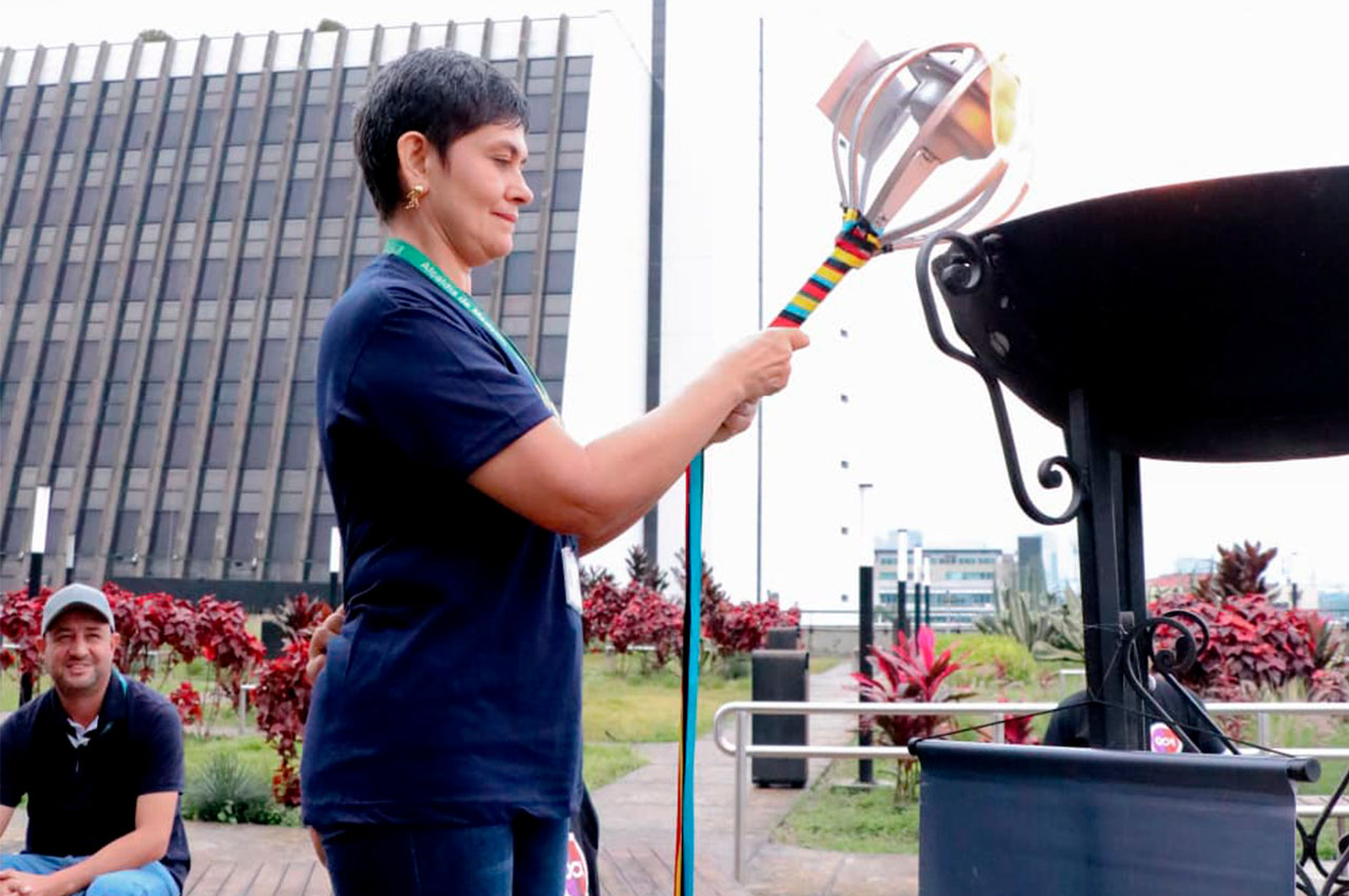 Mónica ingresó con la antorcha para encender el pebetero, representando esperanza, disciplina y compromiso colectivo, marcando oficialmente el inicio de las justas.