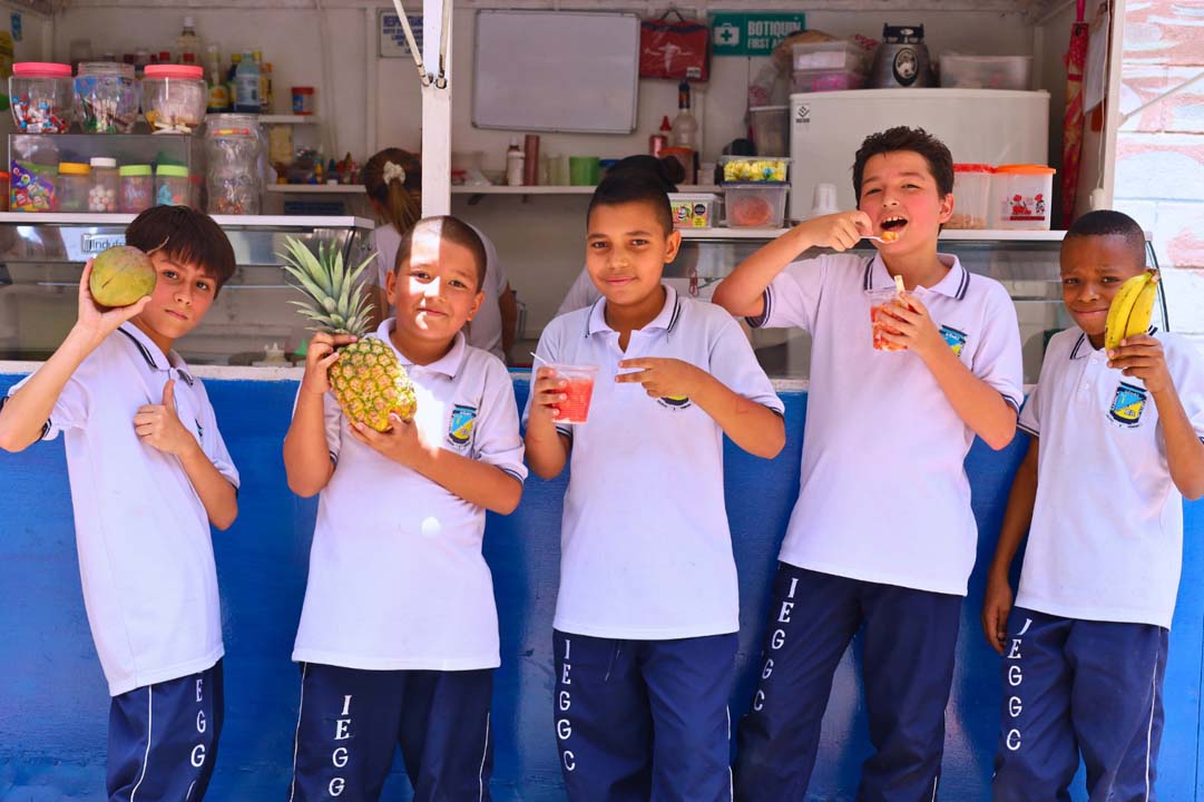 “Con el acompañamiento de la Alcaldía, venimos fortaleciendo el proceso de mejoramiento de la alimentación saludable para los jóvenes de la institución. Aquí les ofrecemos desayunos y almuerzos caseros. Se les prepara avena, salpicón, ensalada de frutas y jugos naturales, así como otras opciones nutritivas”, señaló José Fernando Arango, tendero de la Institución Educativa La Milagrosa.