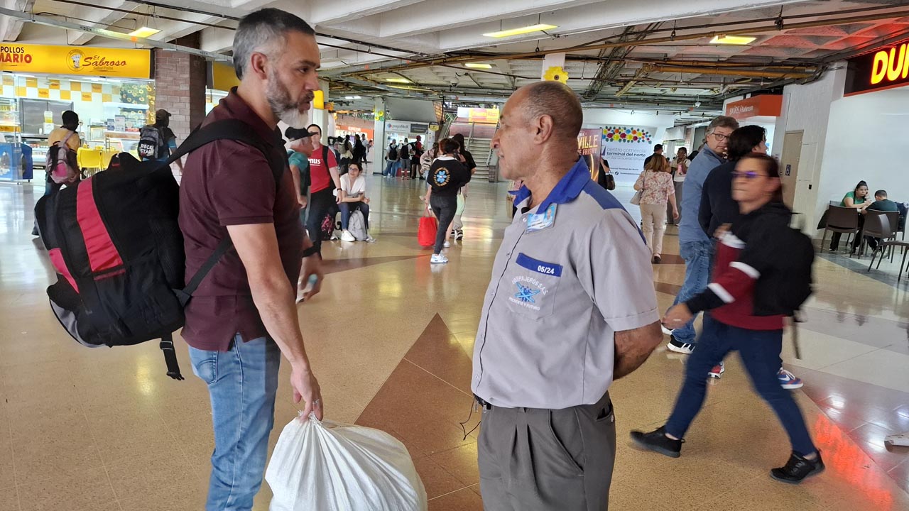 La ronda se repite unas 14 veces cada día y cuando no cargan maletas, se convierten en guías que ayudan con amabilidad y sin reparos a cuanto usuario lo requiera. Ayudan a personas con movilidad reducida, conectan a los usuarios con las taquillas y los demás servicios que se prestan dentro de la Terminal del Norte.