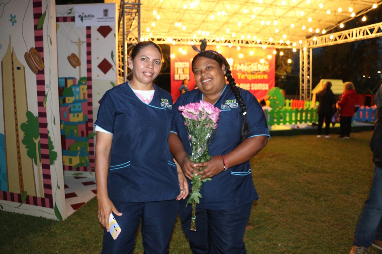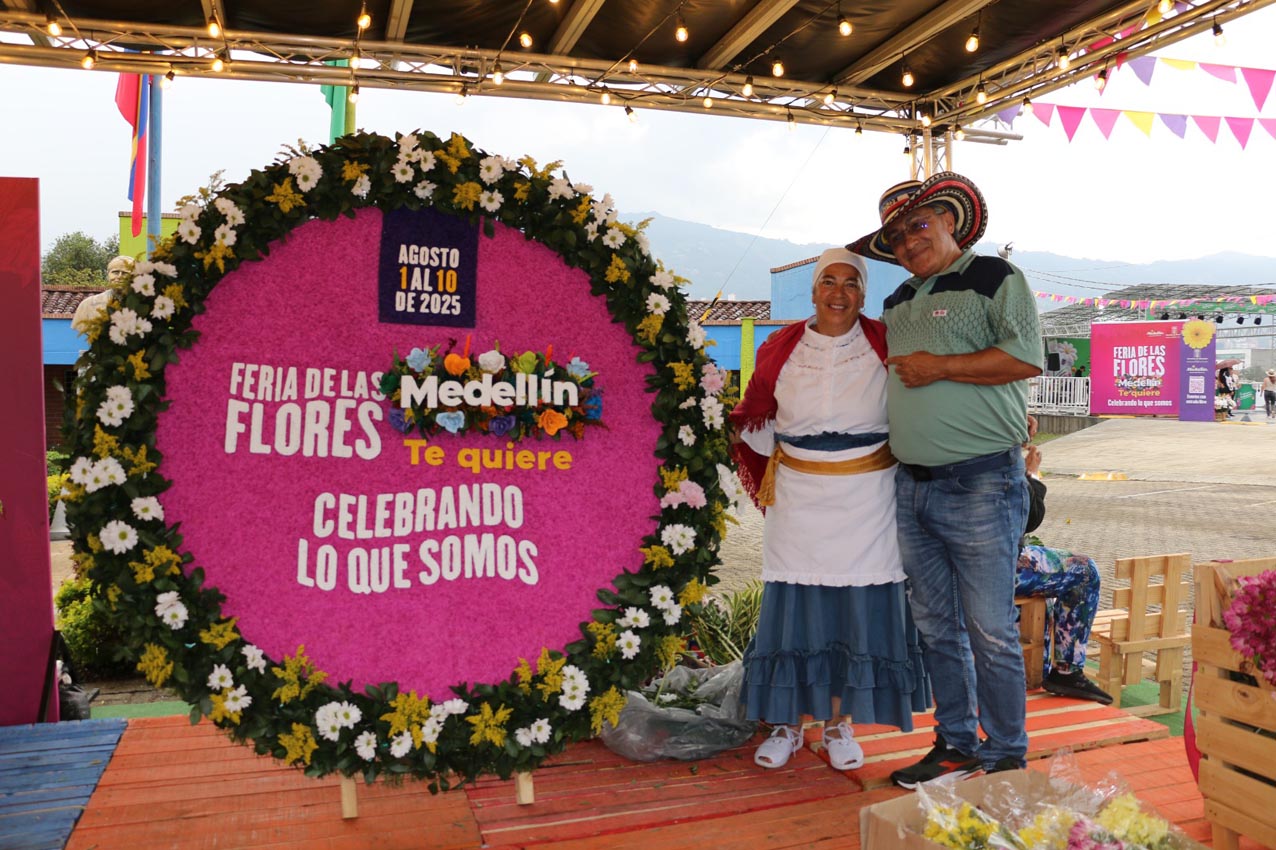 Entre los espacios diseñados para congregar a propios y visitantes a la Feria de las Flores en Medellín, resaltan las Plazas de las Flores: atmósferas diseñadas para que todos sus visitantes experimenten la cultura y gastronomía paisa, entre música, baile, risas y flores; una cultura que se queda en el corazón de todos aquellos que tienen la fortuna de estar en estos sitios. Tal es el caso de Lorena Mendoza y Ulises Montero, dos visitantes mexicanos, que oyeron de la feria en el aeropuerto y sin pensarlo dos veces, cambiaron su itinerario, solo para venir a conocer las obleas y los merengones: “Nos enteramos en el avión por otros mexicanos de que estaban en feria, así que decidimos quedarnos unos días más en Medellín. Estamos enamorados de la comida, las arepas, las obleas, la belleza de las mujeres; aquí las personas son muy amables, muy dadas a ayudar. Nos ha llamado mucho la atención el ver silletas en todas partes, no sabíamos que se llamaban así, pero son muy chidas, (bonitas) la verdad”.